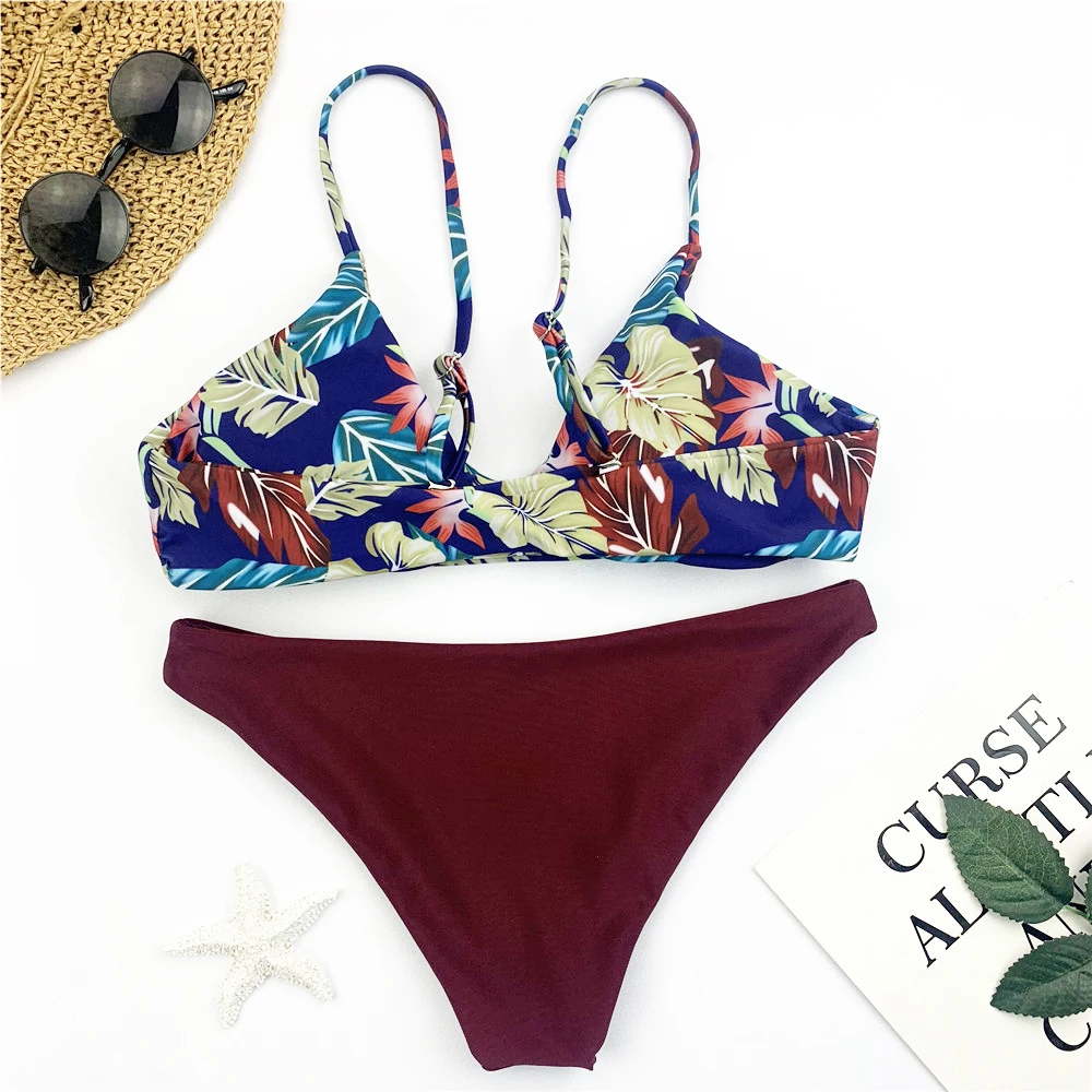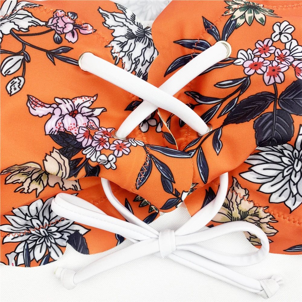 Sexy Ruffle Bikini Women Floral Print Swimwear Push Up Swimsuit Lace Up Biquini Brazilian Bikinis Rivet Bathing Suit Pad Mujer