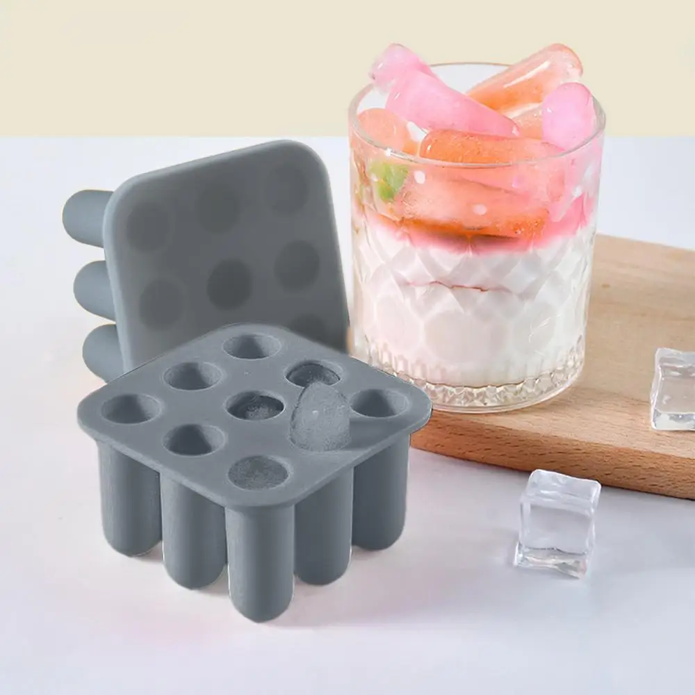 Silicone Ice Cube Tray With Lid Long Strip 9 Grid Cylindrical Ice Tray Ice Making Mold Water Bottle Ice Cube Tray For Freezer