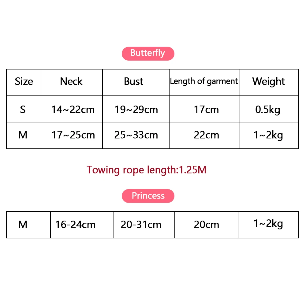 M: Neck Circumference: 17-25cm; Bust: 25-33cm; Weight Suggestion: 1-2kg