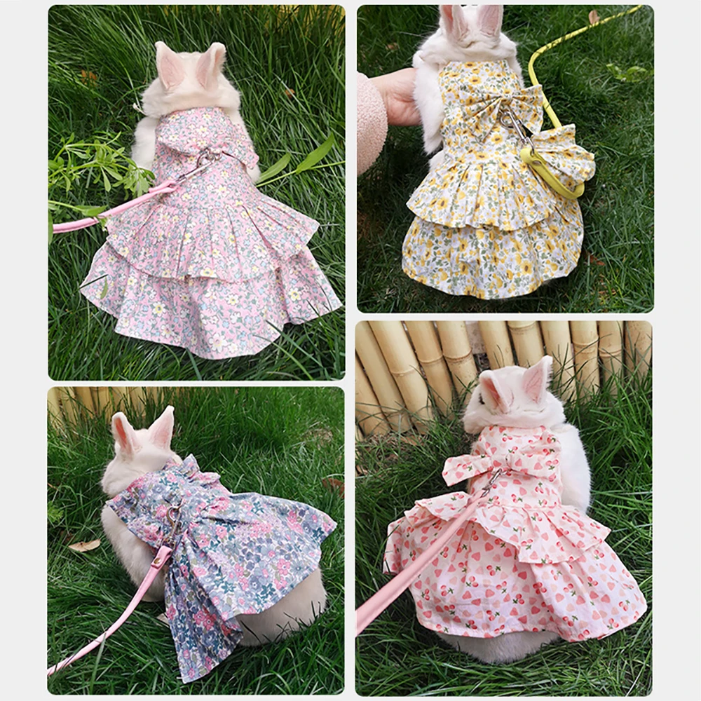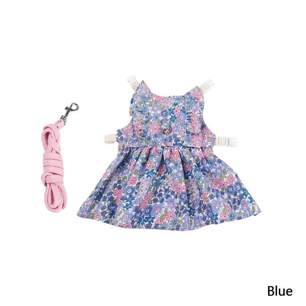 Small Animal Harness Vest Leash Set Soft Floral skirt Clothes Travel Chest Strap Rabbit Ferret Bunny Hamster Small Pet Supplies