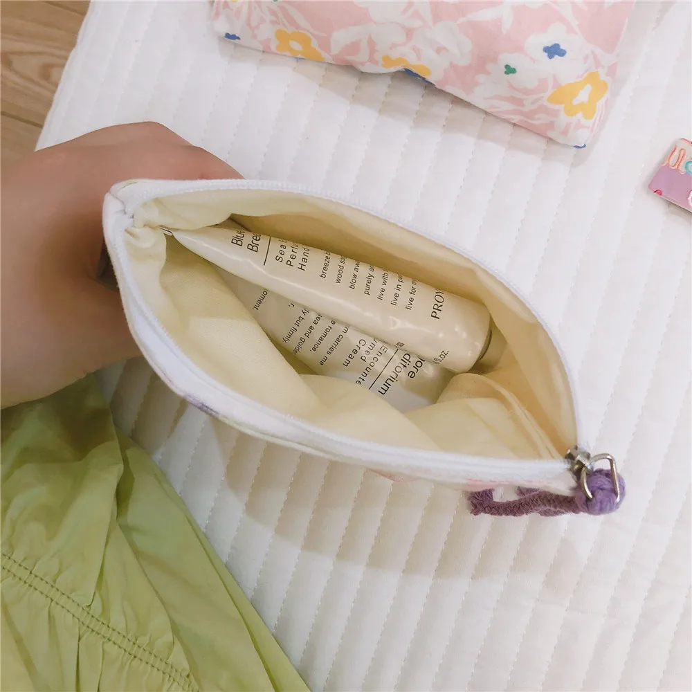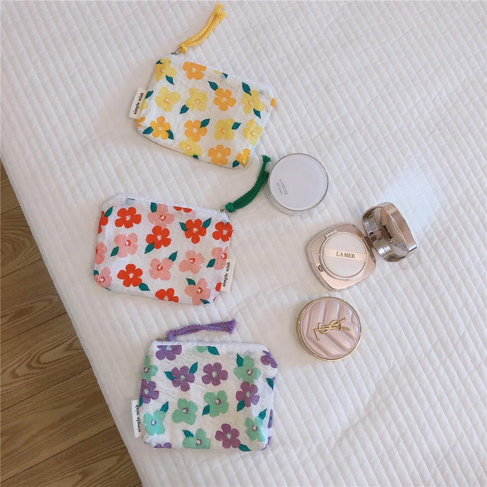 Small Fabric Cosmetic Makeup Bag Mini Cotton Floral Organizer Bags For Women Little Purse Coin Pouch Children’s Cosmetics Case