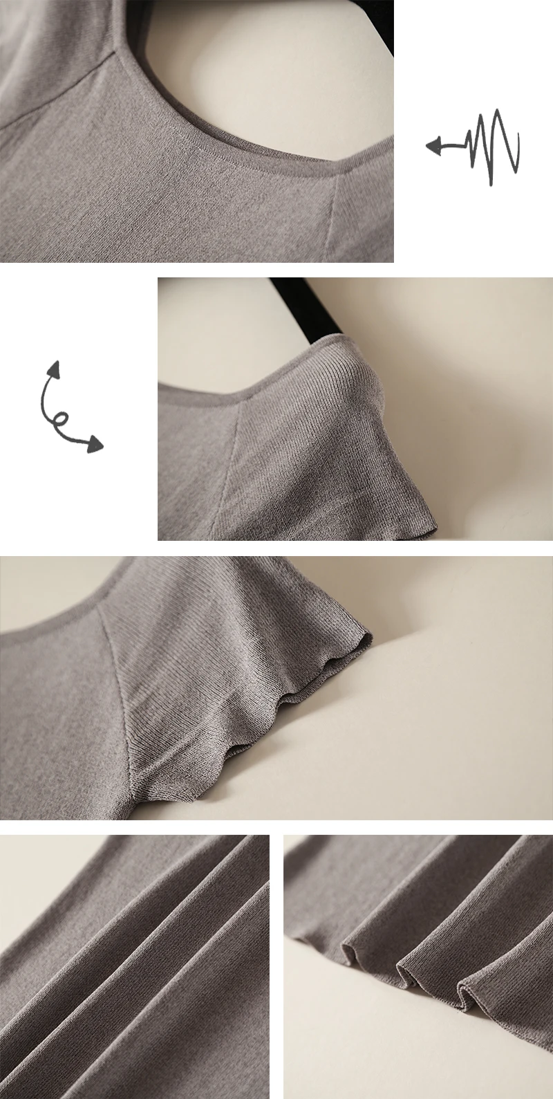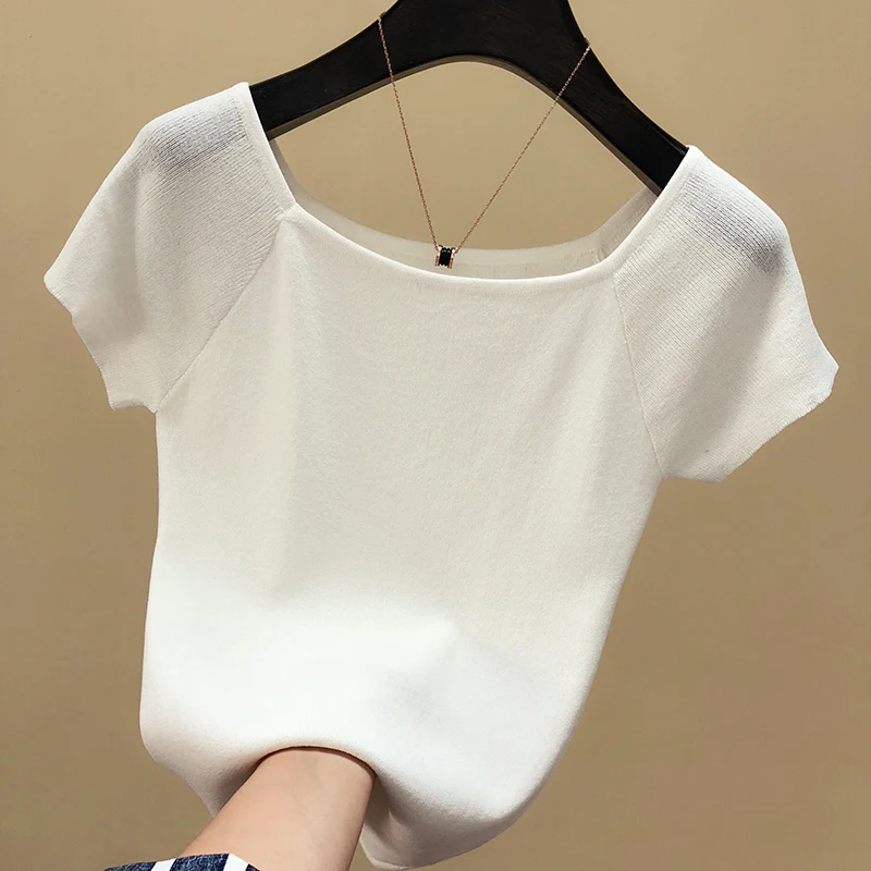 solid square collar knitted T-shirt new female short sleeve simple knitted tshirts tops for girls 2020 summer