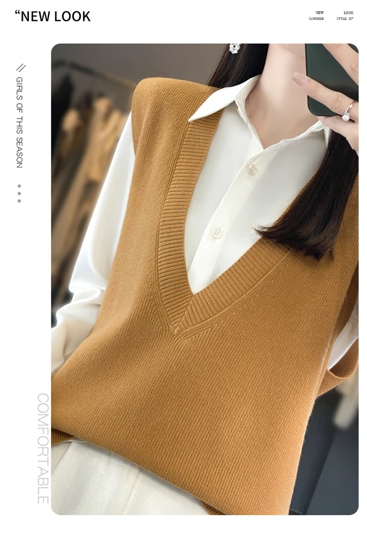 Spring and autumn knitting pullover vest women loose Korean college sleeveless sweater with V-neck casual pullover sweater vest