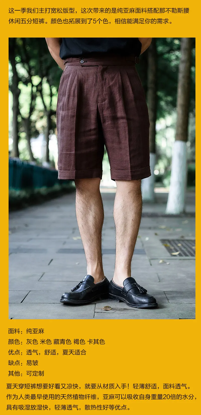 Spring And Summer Italian Casual Naples Flax Five-point Shorts Men’s Pure Linen High Waist Paris Buckle Loose Pants Cargo Pants