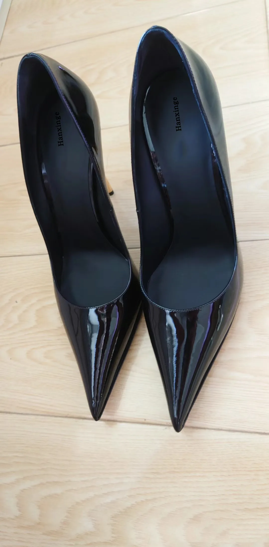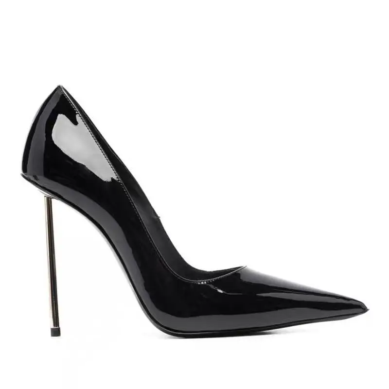 Spring and summer new pointed shallow cut patent leather single shoes metal thin high heels banquet dress versatile women’s shoe
