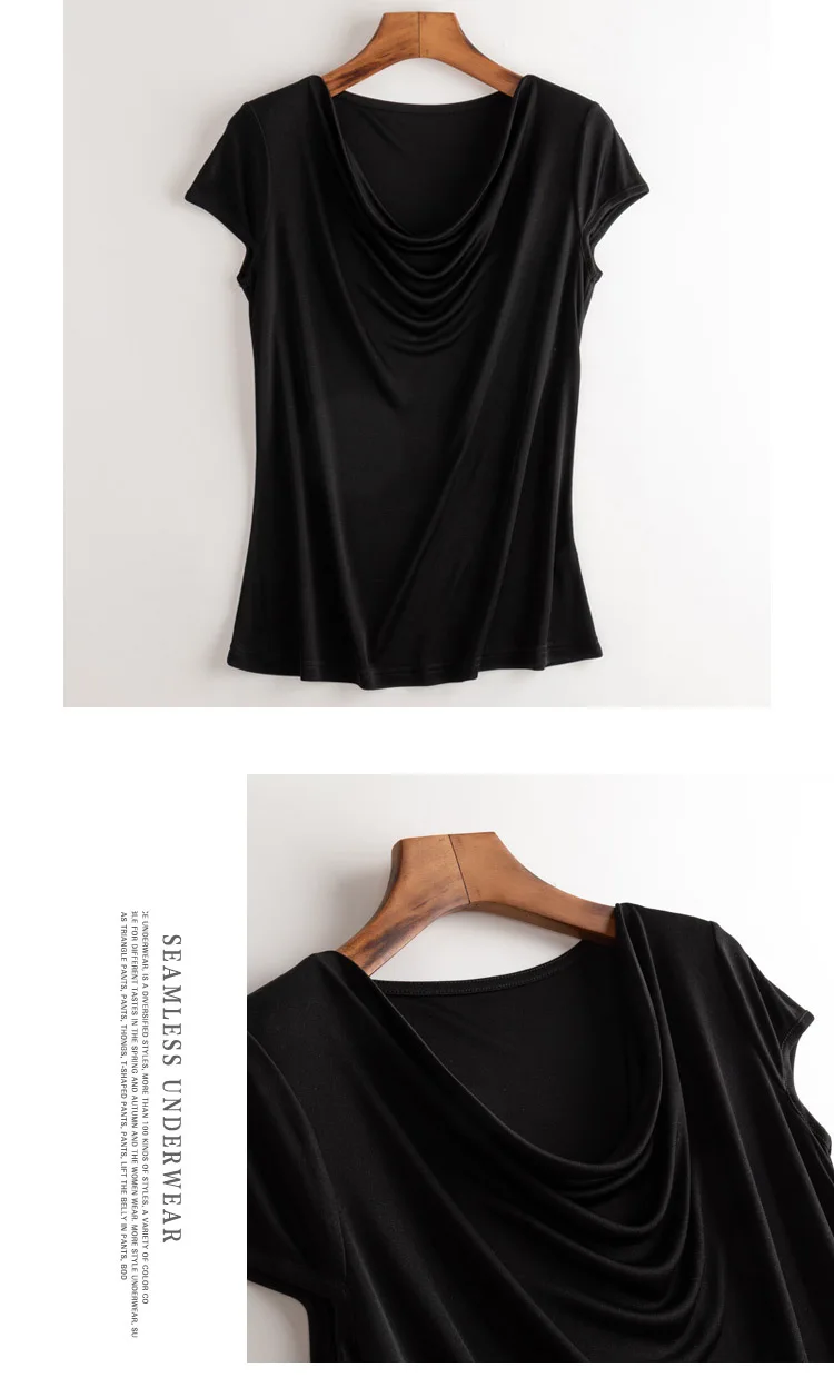 Spring and Summer Women’s Silk Short Sleeve Top Swing Collar Undercoat Silk T-shirt Women’s Fashion Top New