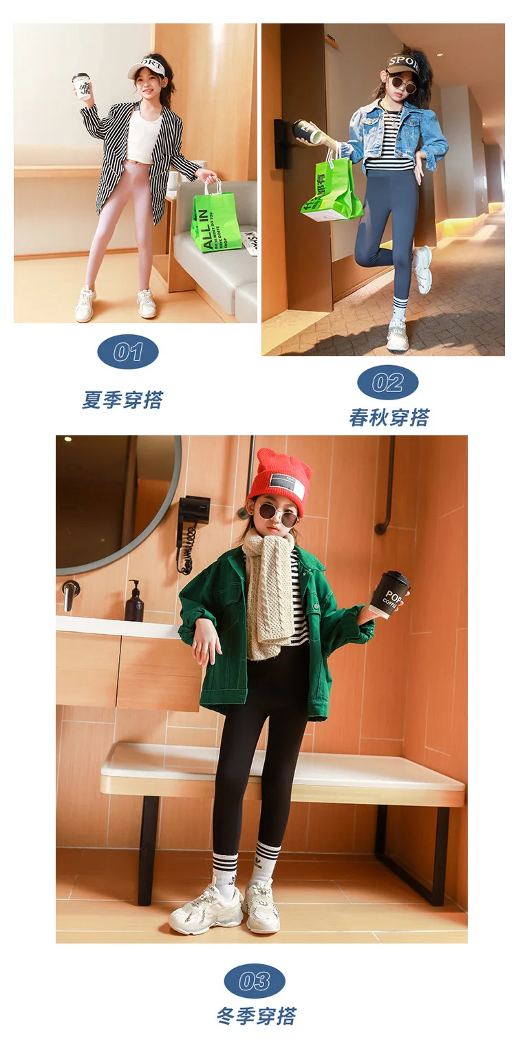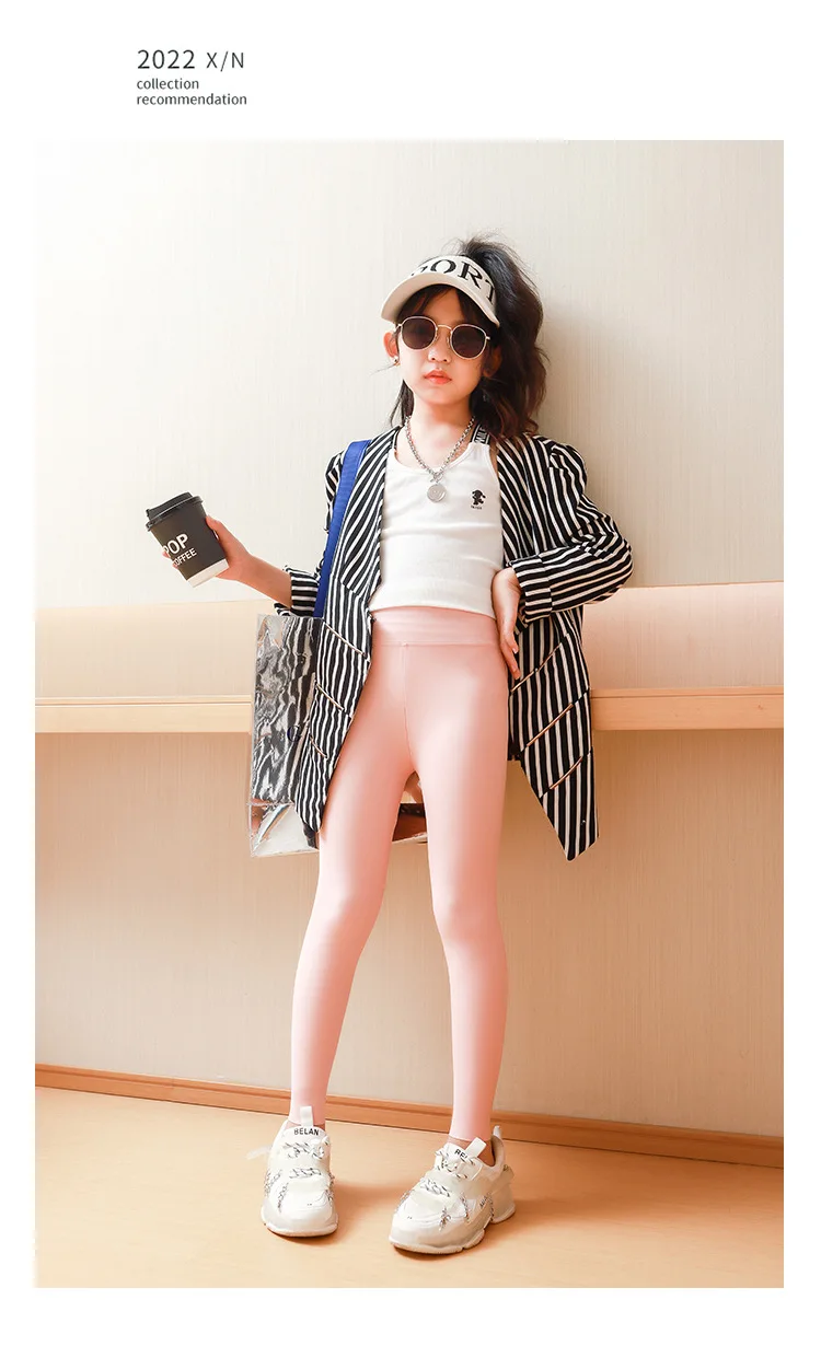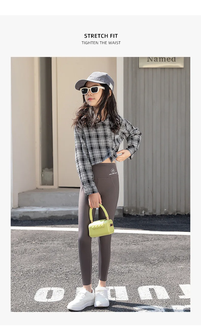 Spring Autum Children’s Yoga Leggings Girls Shark Skin Leggings Sports Pants For Kids Pure Color Trousers
