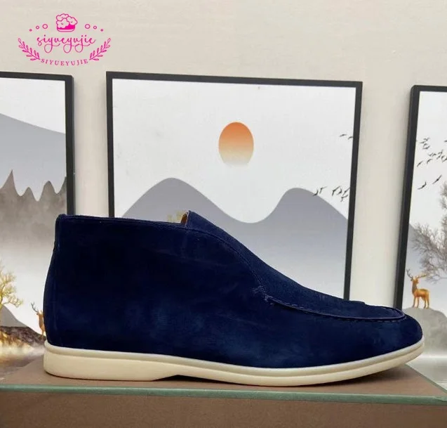 Spring Autumn New Style High Top Suede leather Casual Flat Shoes Women Round Head Women’s Driving Shoes Breathable Couple Shoes