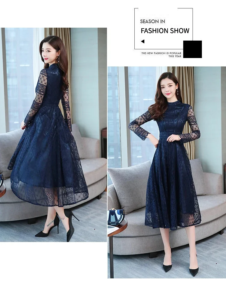 Spring Elegant Long Summer Sleeve Lace Dress Fashion Korean Party Dresses for Women Vestido 2023 KJ5123