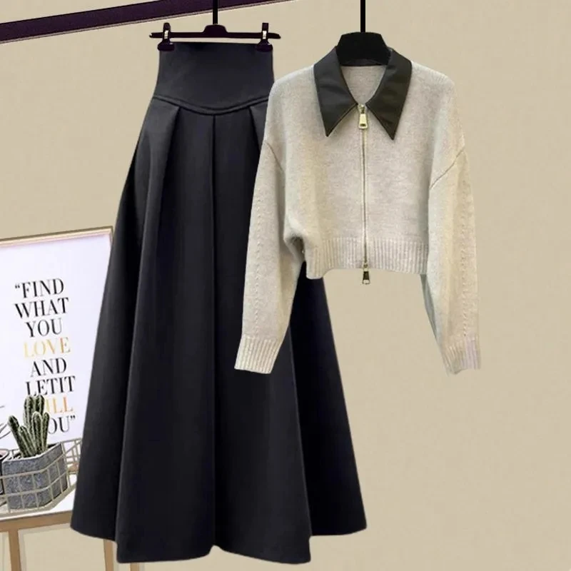 Spring Elegant Two Piece Skirt Set Warmer Long Sleeve Sweater+A Line Skirt Dresses Two Piece Suit Work Office Lady Two Piece