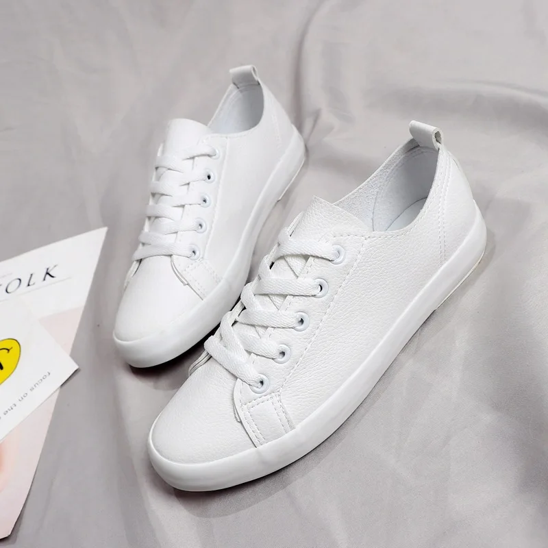 Spring new style flat canvas soft PU white shoes female wild literary lace student comfortable casual sports shoes promotion
