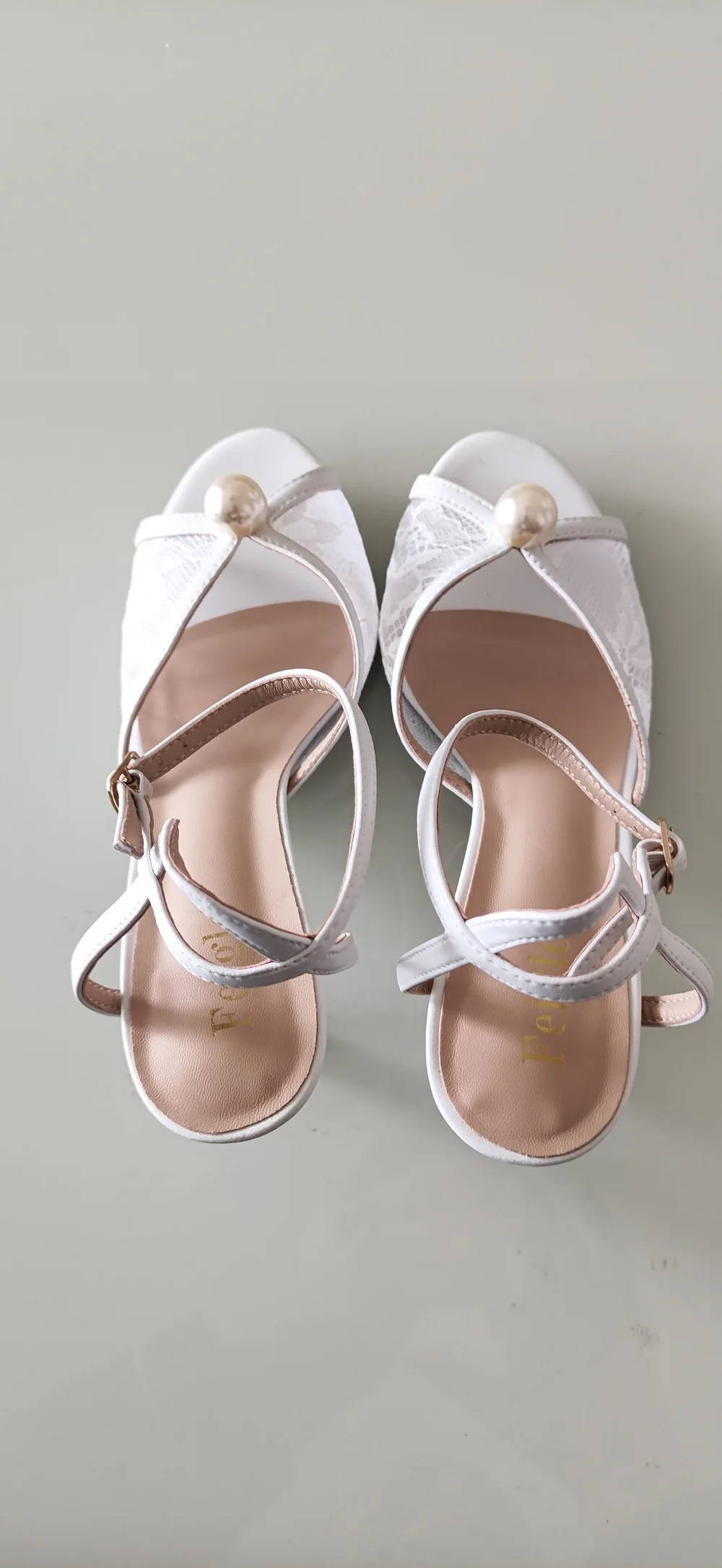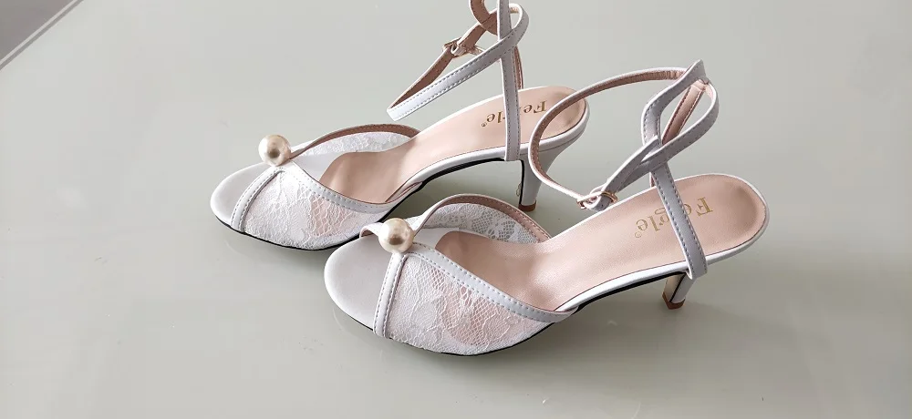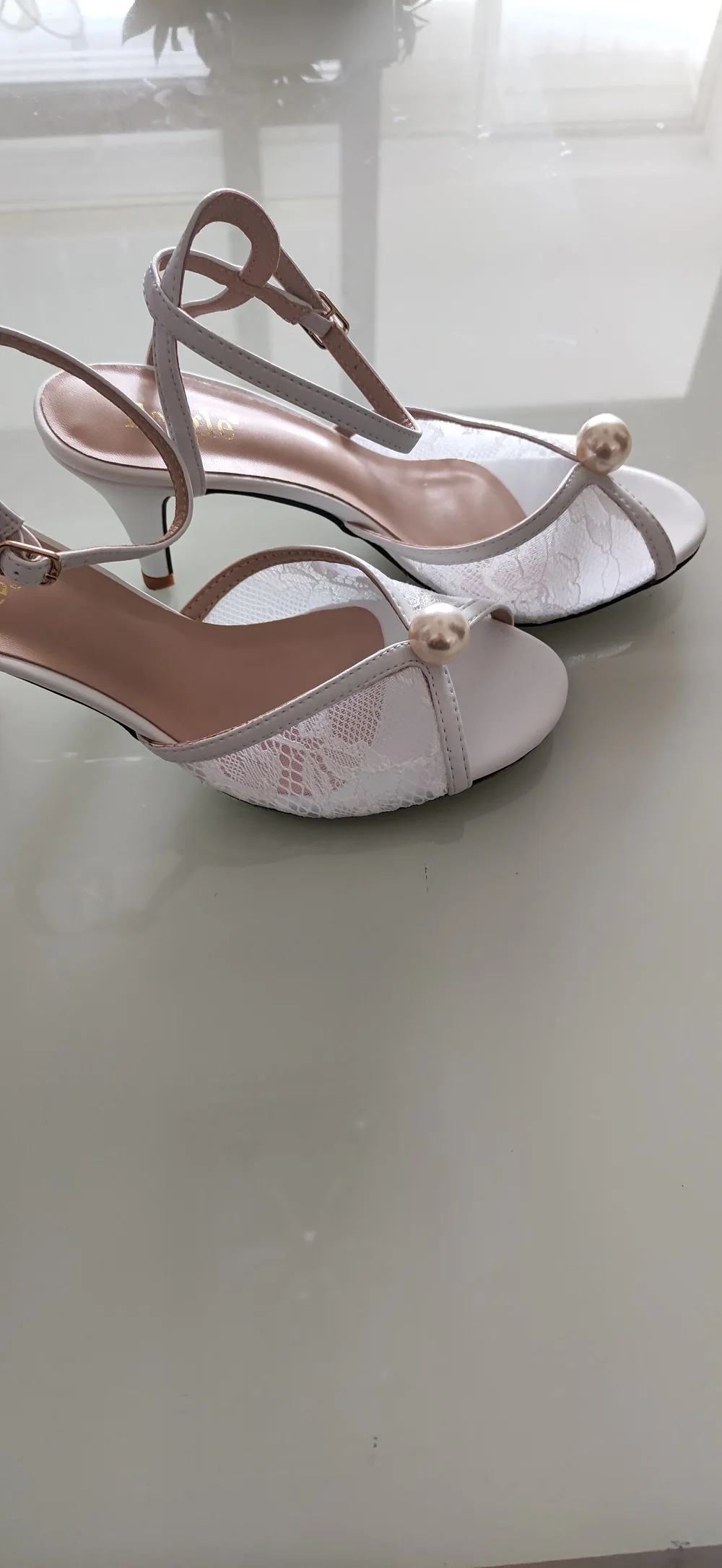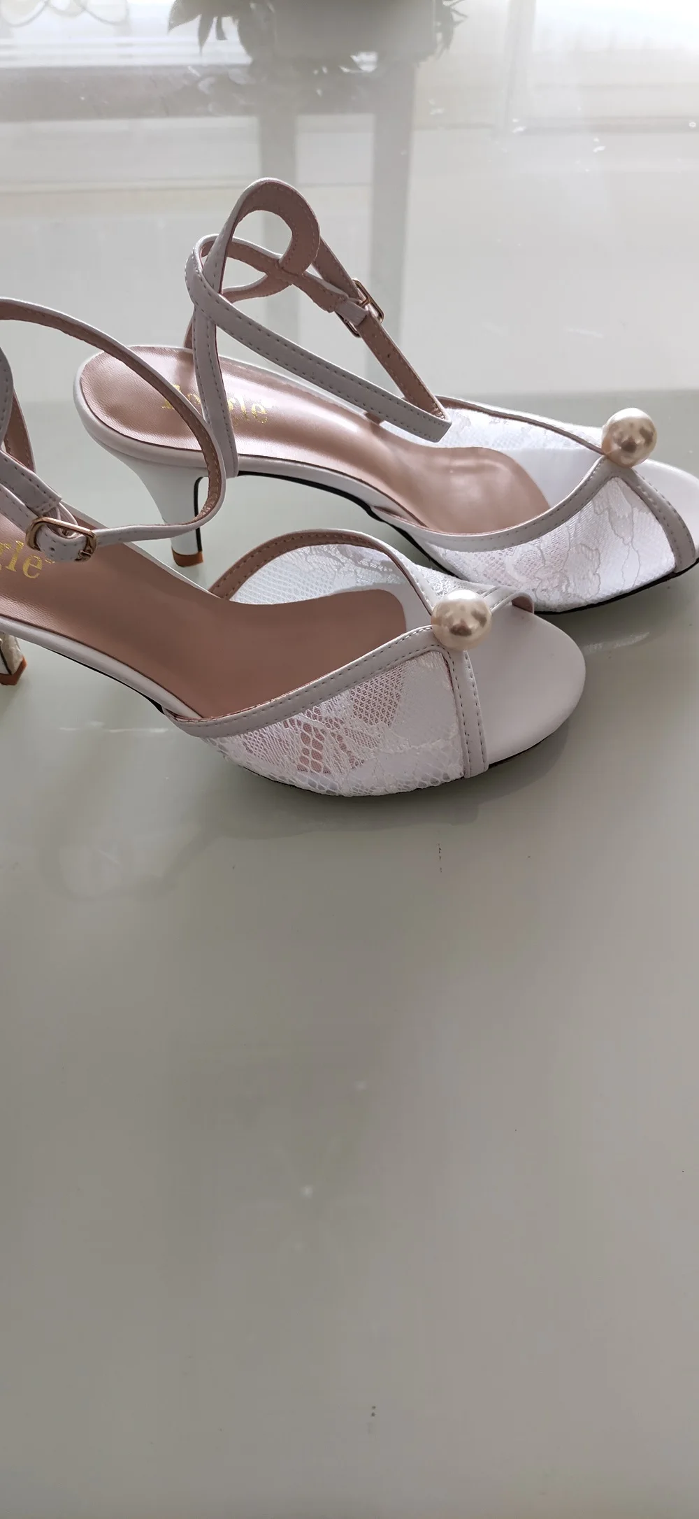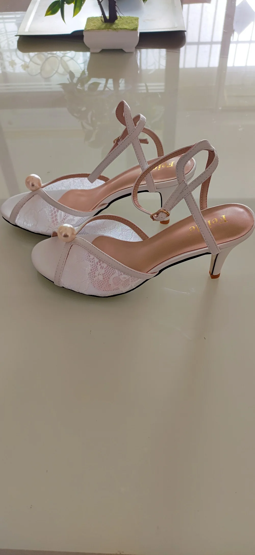 Spring summer new lace fish mouth pearl mesh stiletto sandals fashion bridal wedding shoes banquet dress women’s single shoes