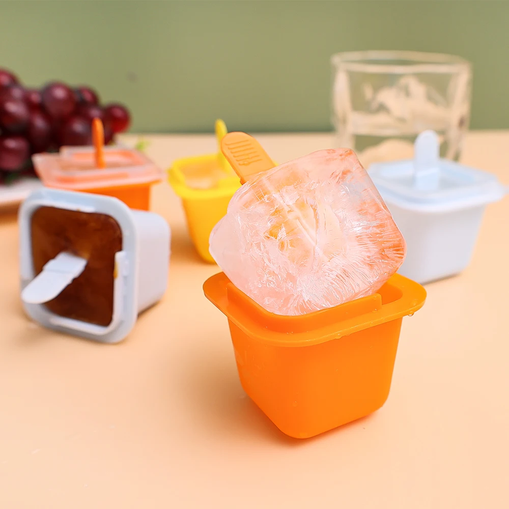 Square Ice Cube Molds Food Grade Silicone Ice Cream Mould Tray with Popsicle Stick DIY Jelly Pudding Summer Ice Ball Maker Tools