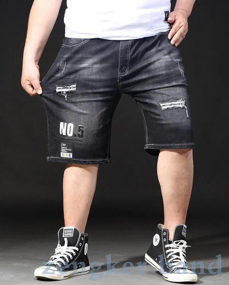 Summer new plus size XL men’s denim shorts old hole retro loose big guy men 6xl 7xl mens casual shorts