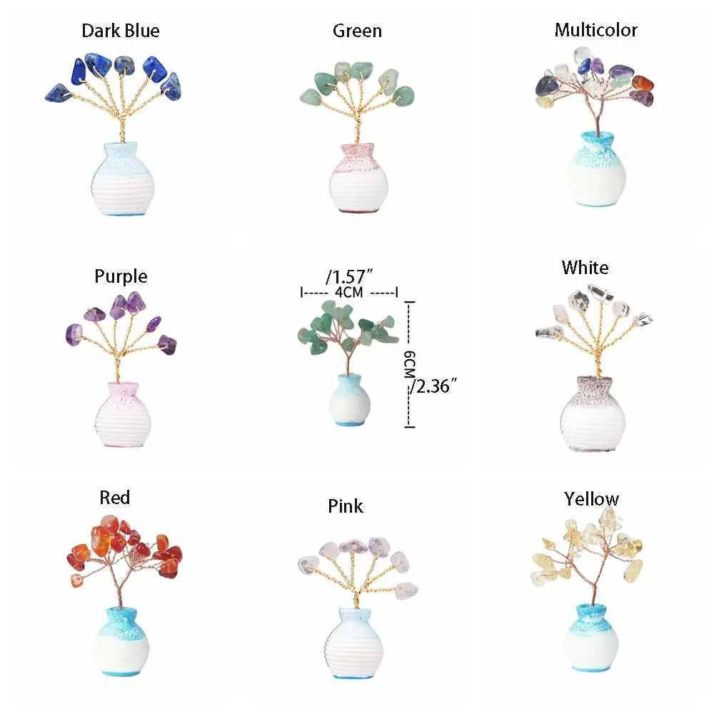 Imitation appearance with a crystal stone tree in a mini vase, can be used to decorate bedrooms, living rooms, offices, bookshelves, etc.