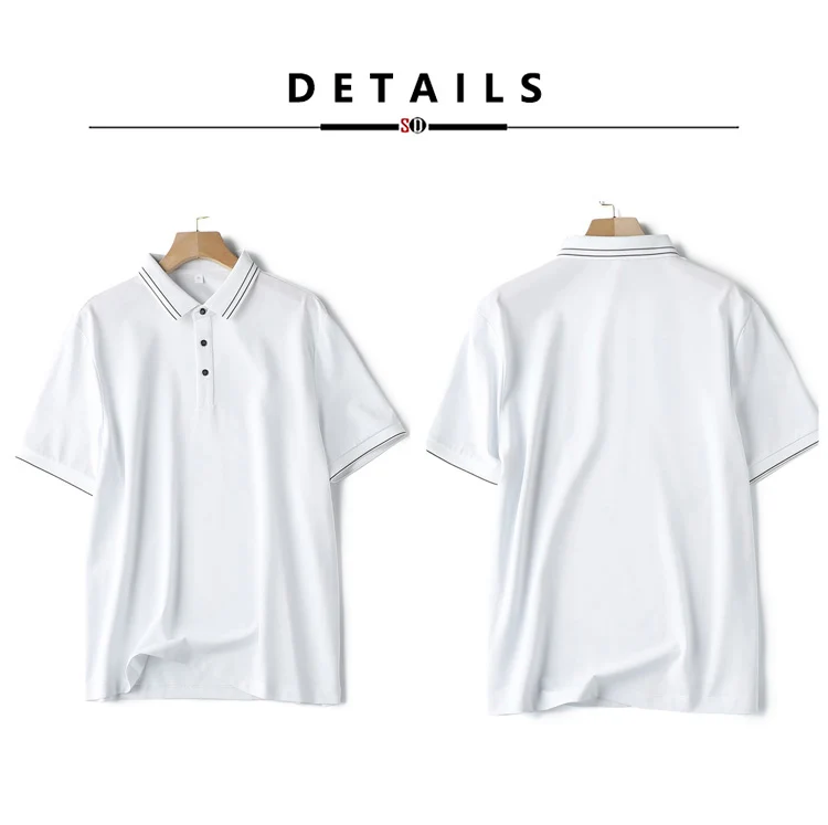 SuyaDream Men Polo Shirt Silk Cotton Blend Short Sleeved Solid Smart Casual T Shirts 2023 New Spring Summer Top Black White
