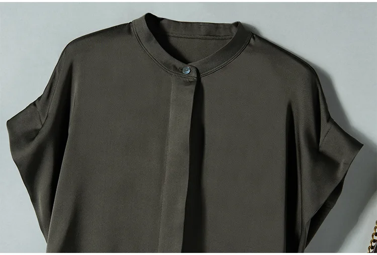 SuyaDream Woman Dress Shirts 23MM 93%Silk 7%Spandex Basic Solid Bat Sleeved Chic Blouse Shirt 2022 Spring Summer Top Black