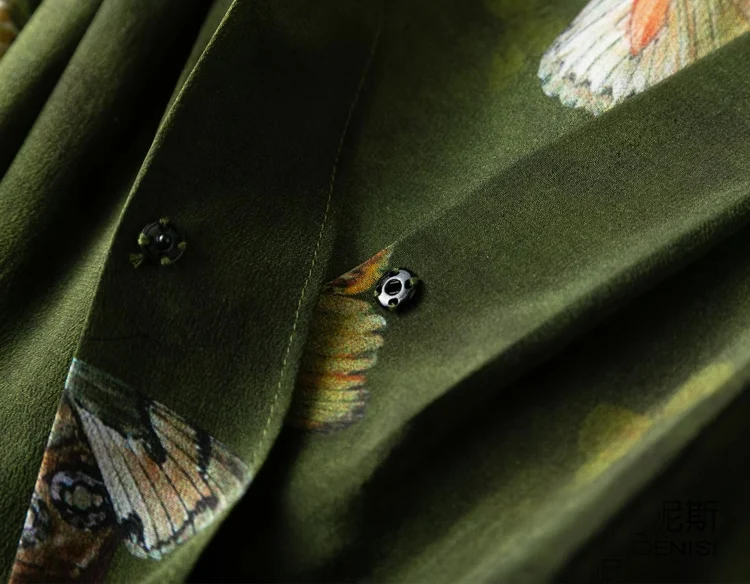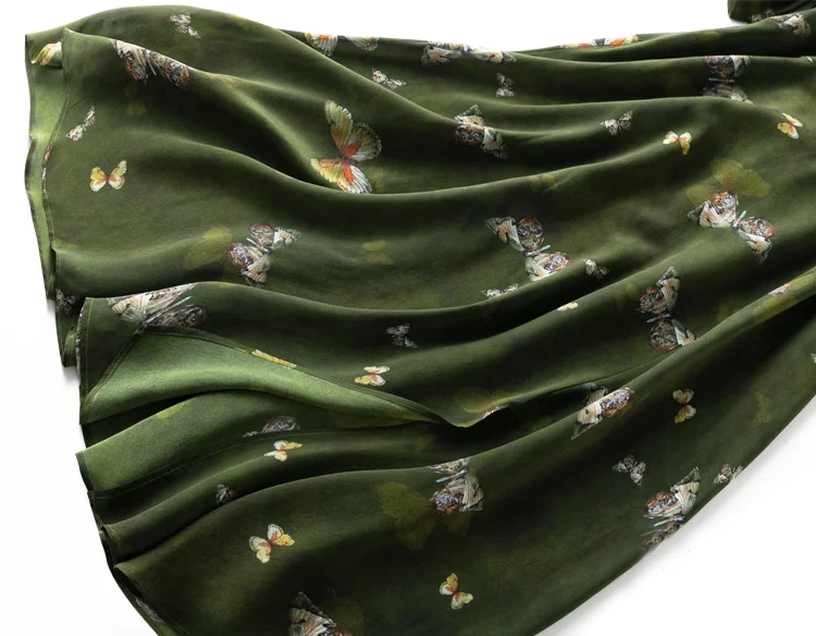 SuyaDream Women Maxi Dresses100%Silk Crepe V Neck Side Vent Elegant Butterfly Prints Long Dress 2023 Spring Summer Green Clothes