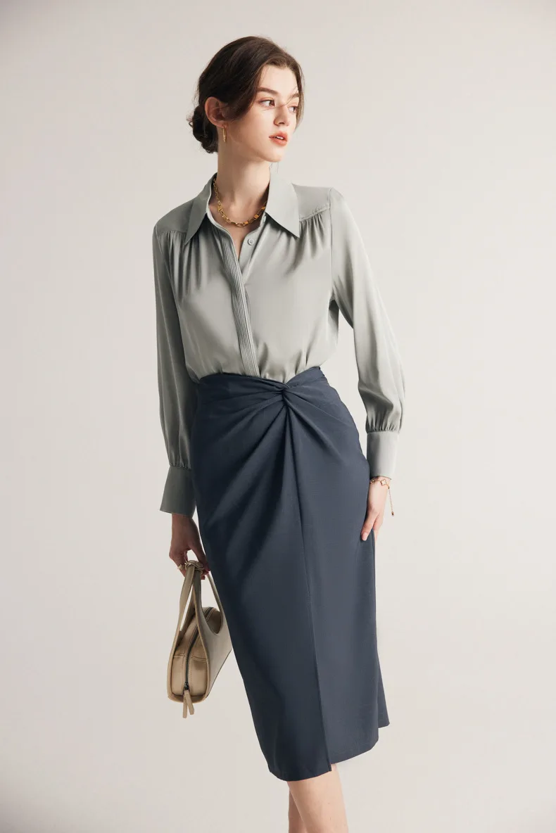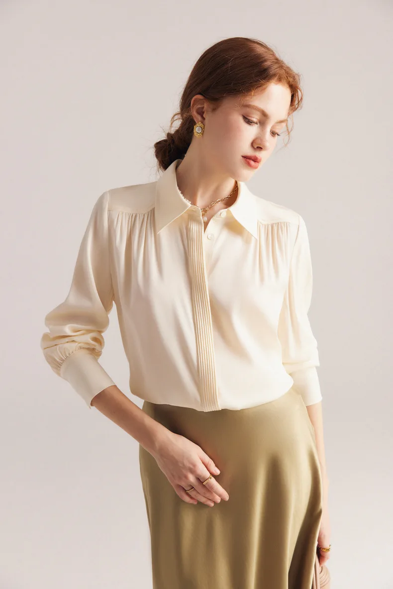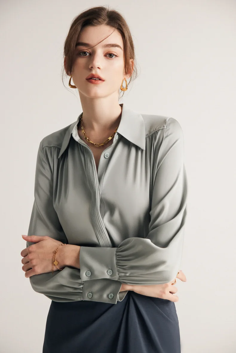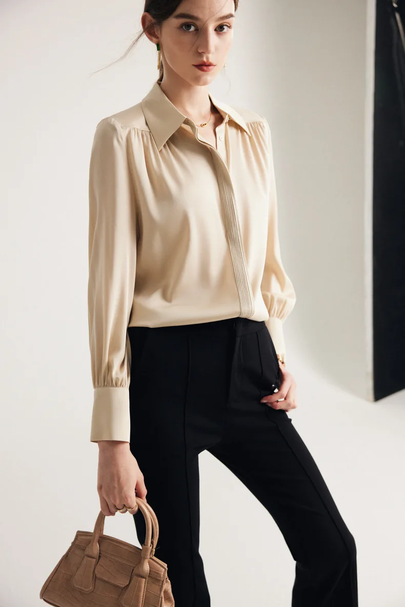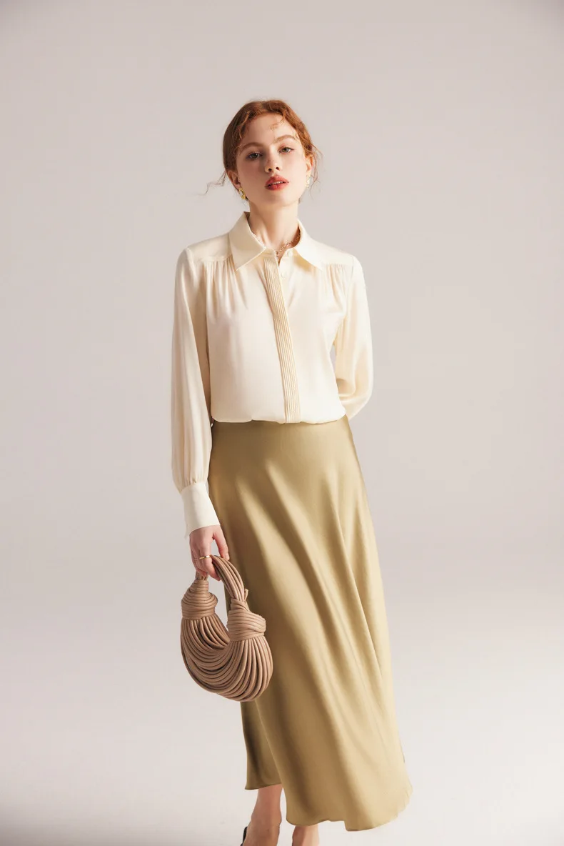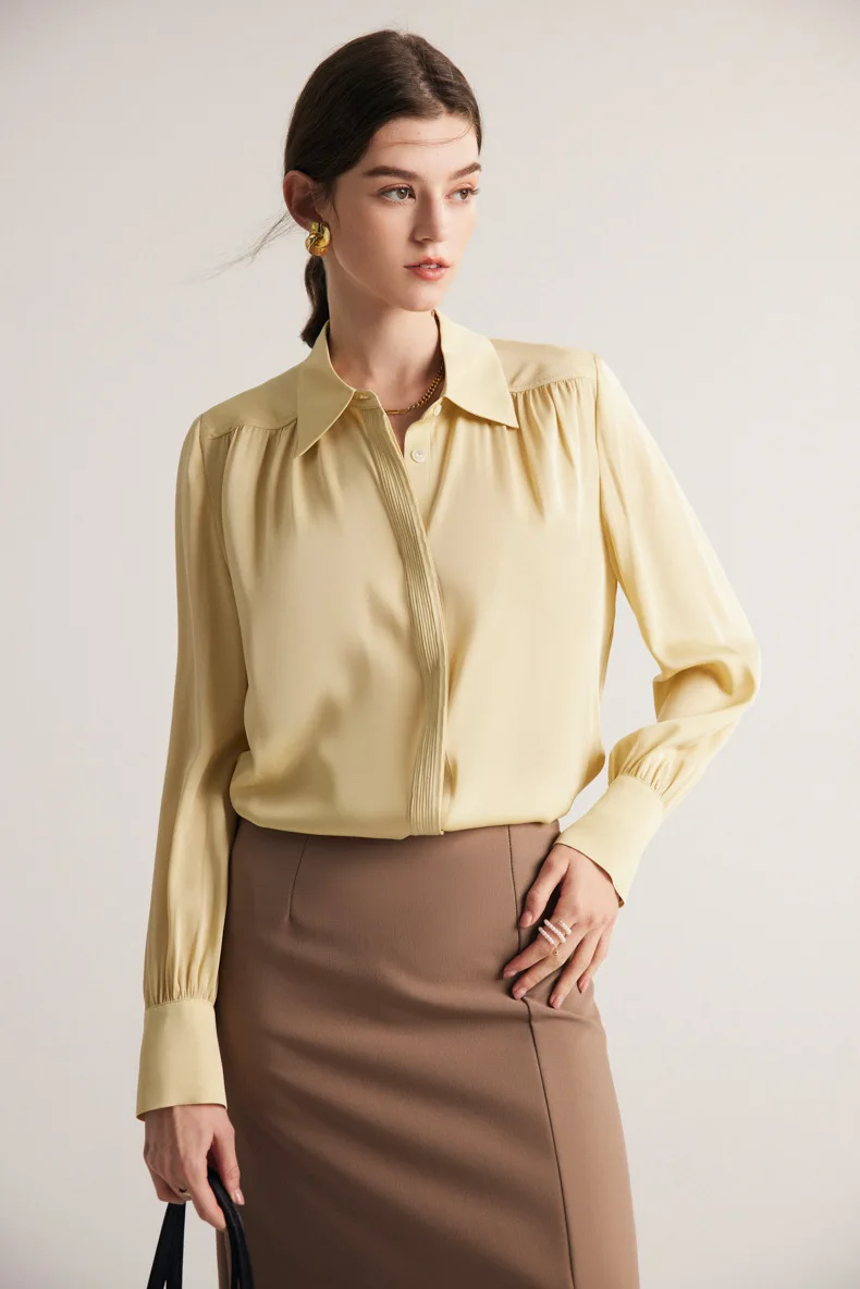 SuyaDream Women Solid Dress Shirts 90%Silk 10%Spandex Long Sleeves Chic Blouses 2023 Fall Winter Office Lady Top Purple