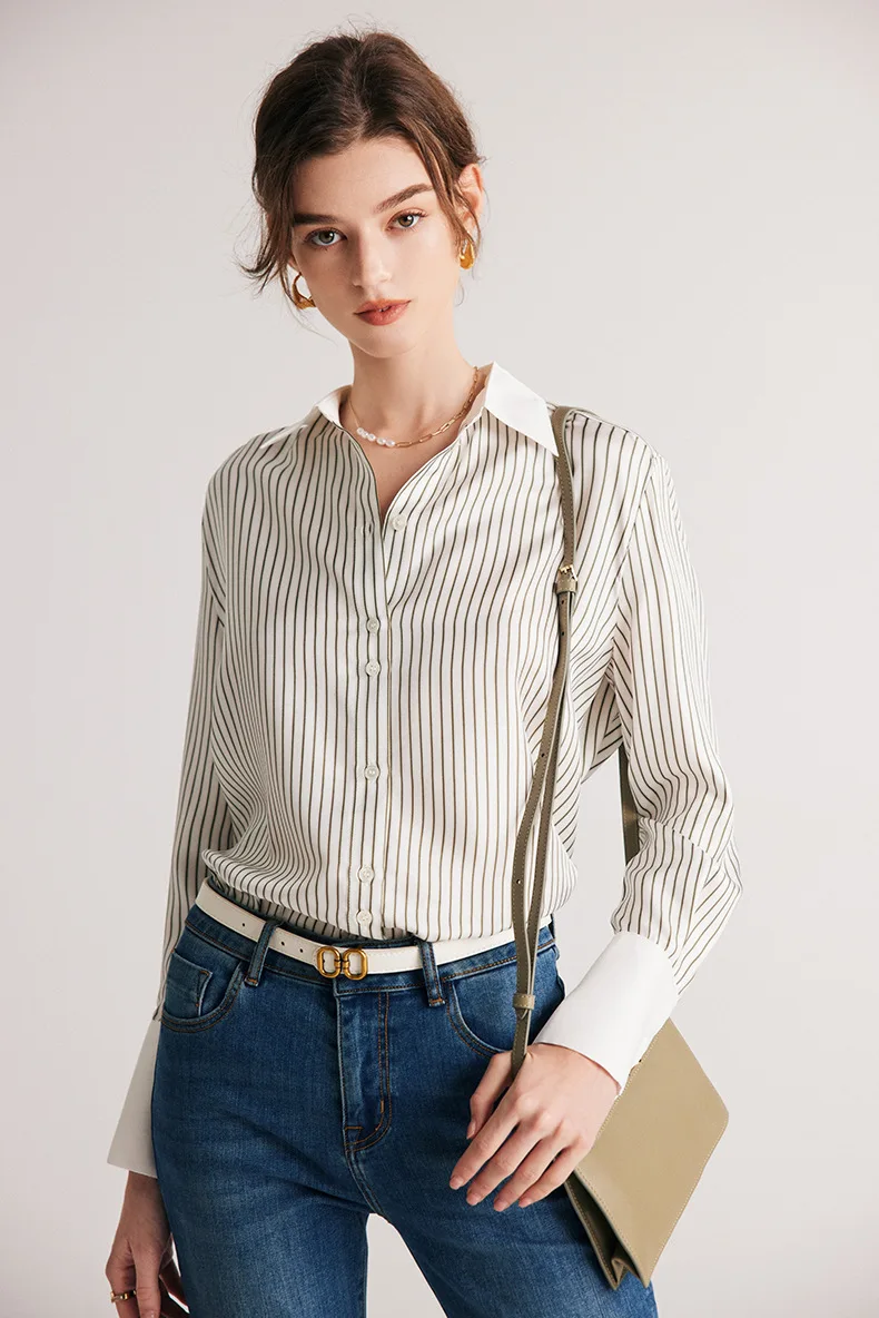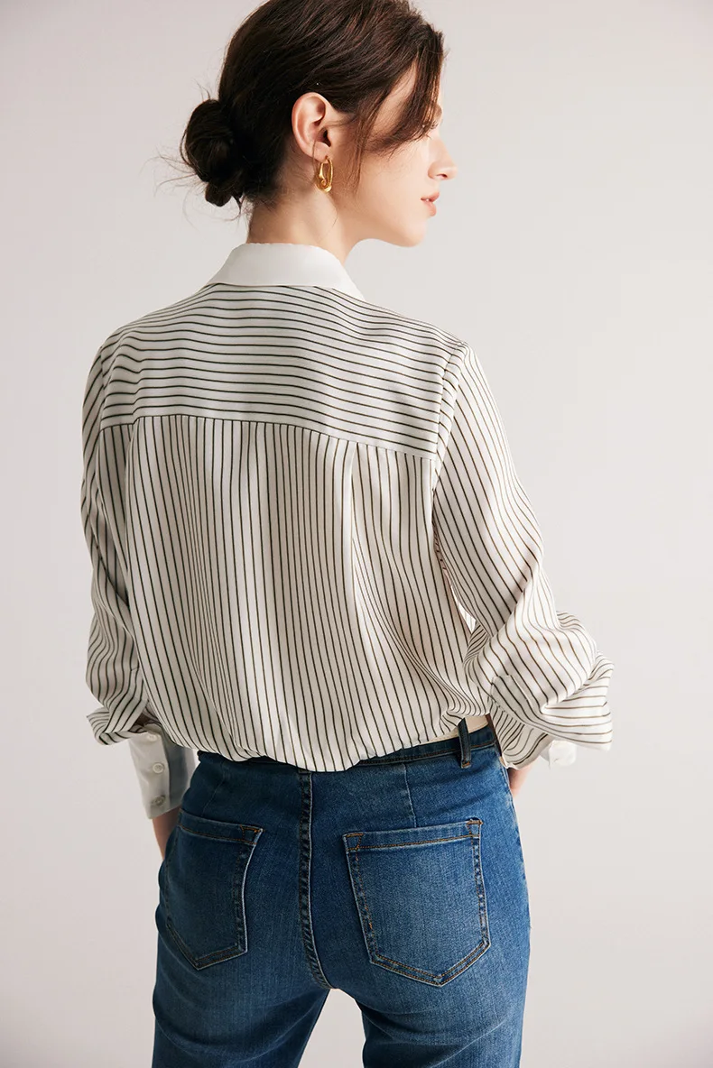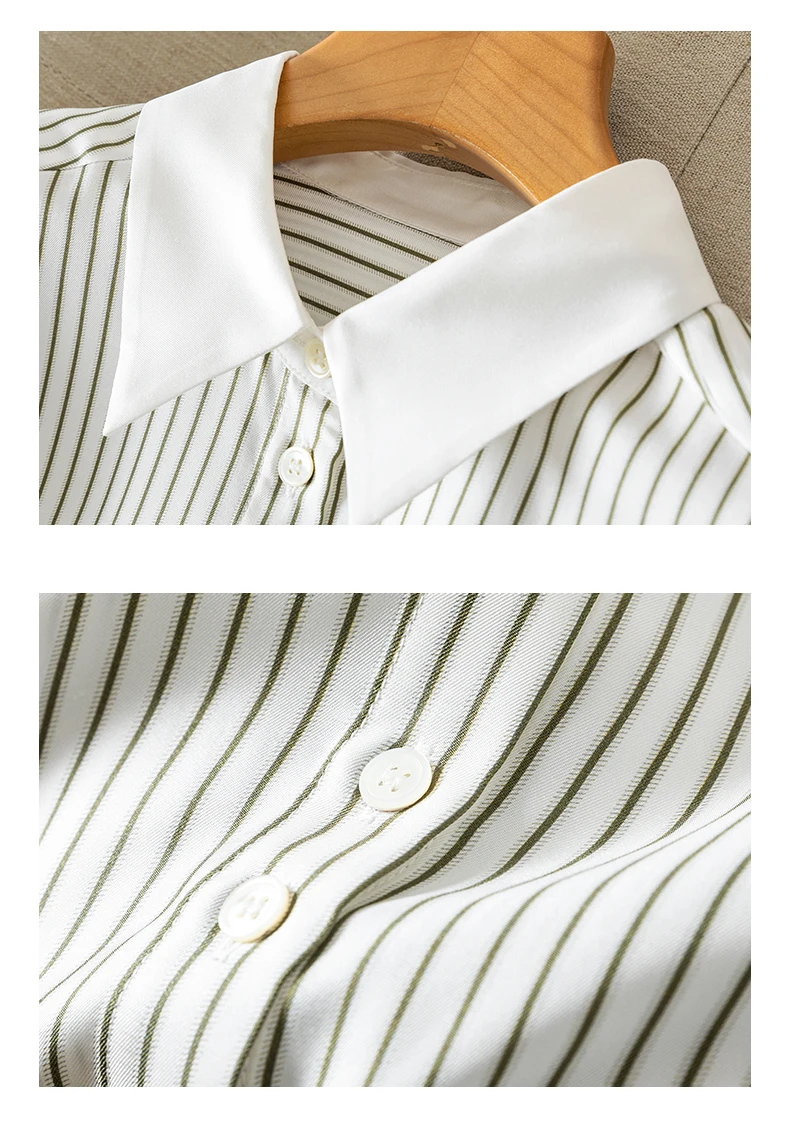 SuyaDream Women Striped Shirts 100%Mulberry Silk Single Breasted Chic Blouses 2023 Spring Summer Silk Top White