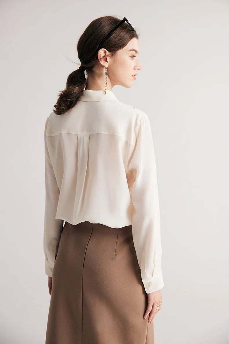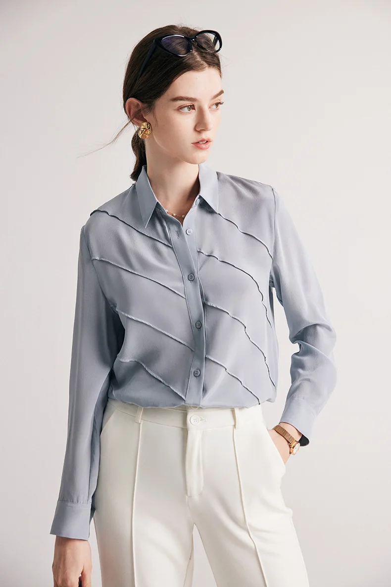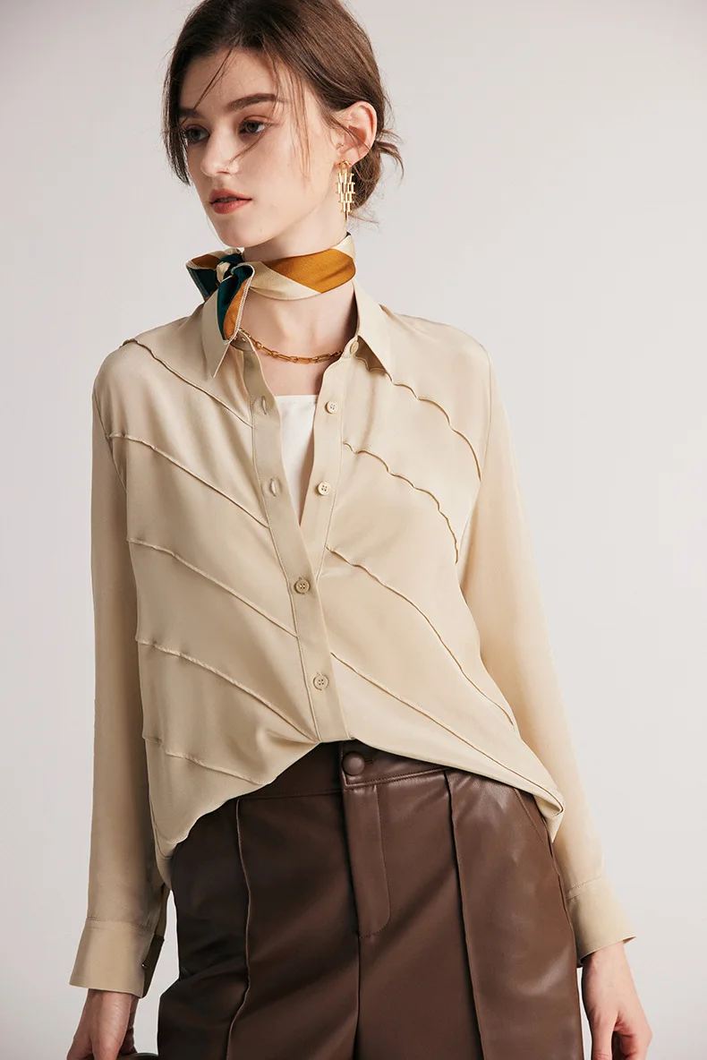 SuyaDream Women Striped Shirts 100%Pure Silk Turn Down Collar Chic Blouses 2023 Spring Summer Office Lady Top Pink Champagne