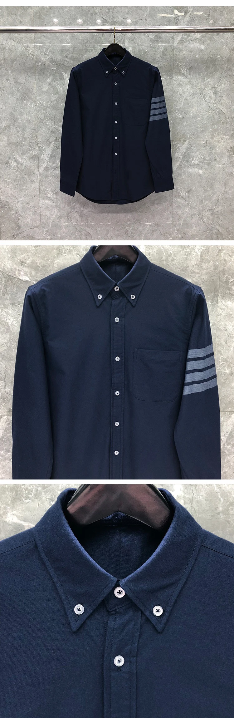 TB Shirts 202 Spring Autunm Fashion Brand Navy Men’s Shirt Gray 4-bar Stripes Formal Tops Casual Cotton Oxford Slim Blouses