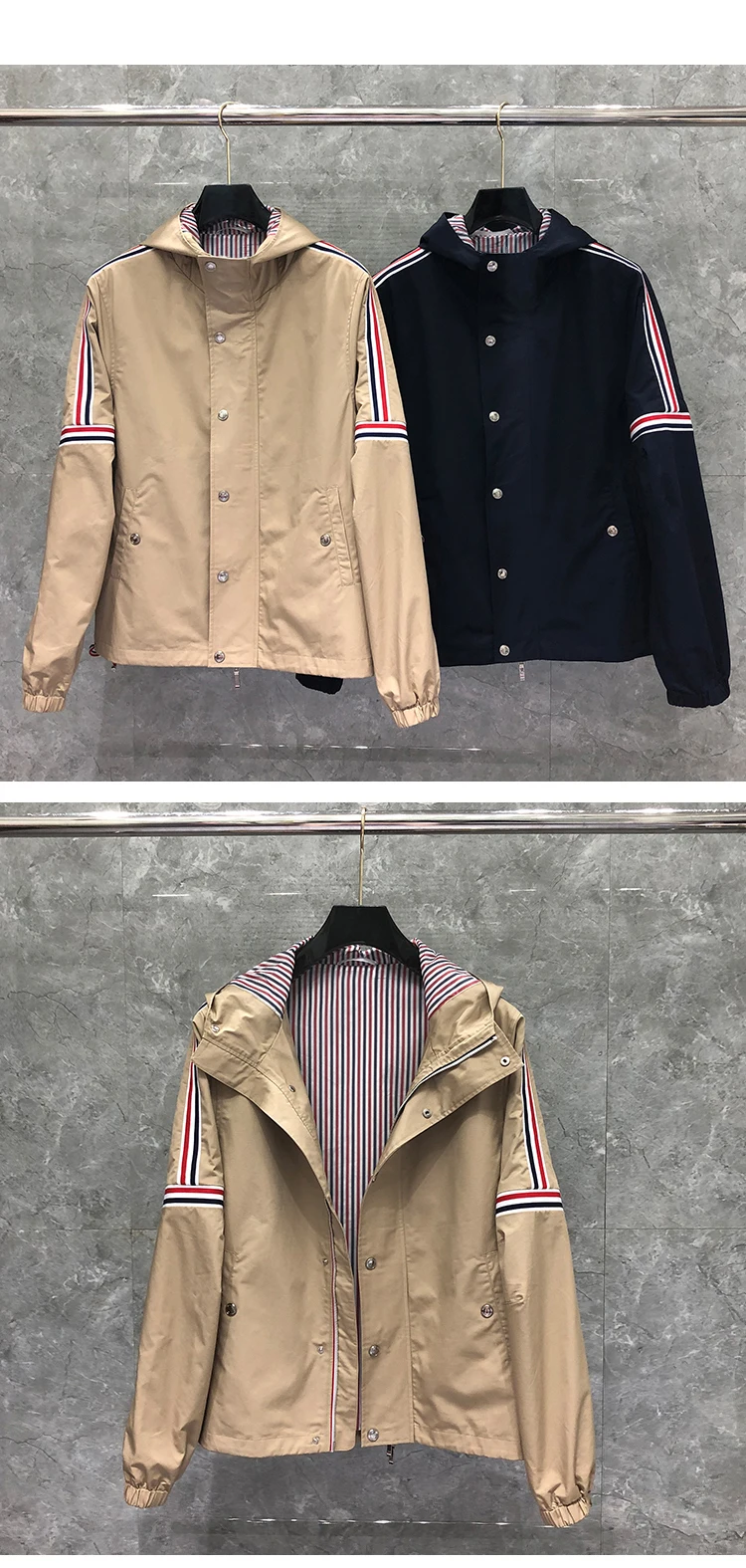 TB THOM Coat Autunm Winter Men’s Jacket Fashion Outdoors Sport Jakcets Classic Sheer Ripstop RWB Elastic Stripe Hooded Clothing
