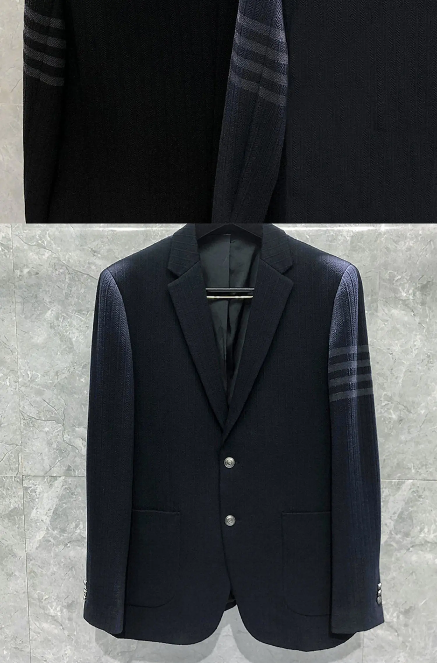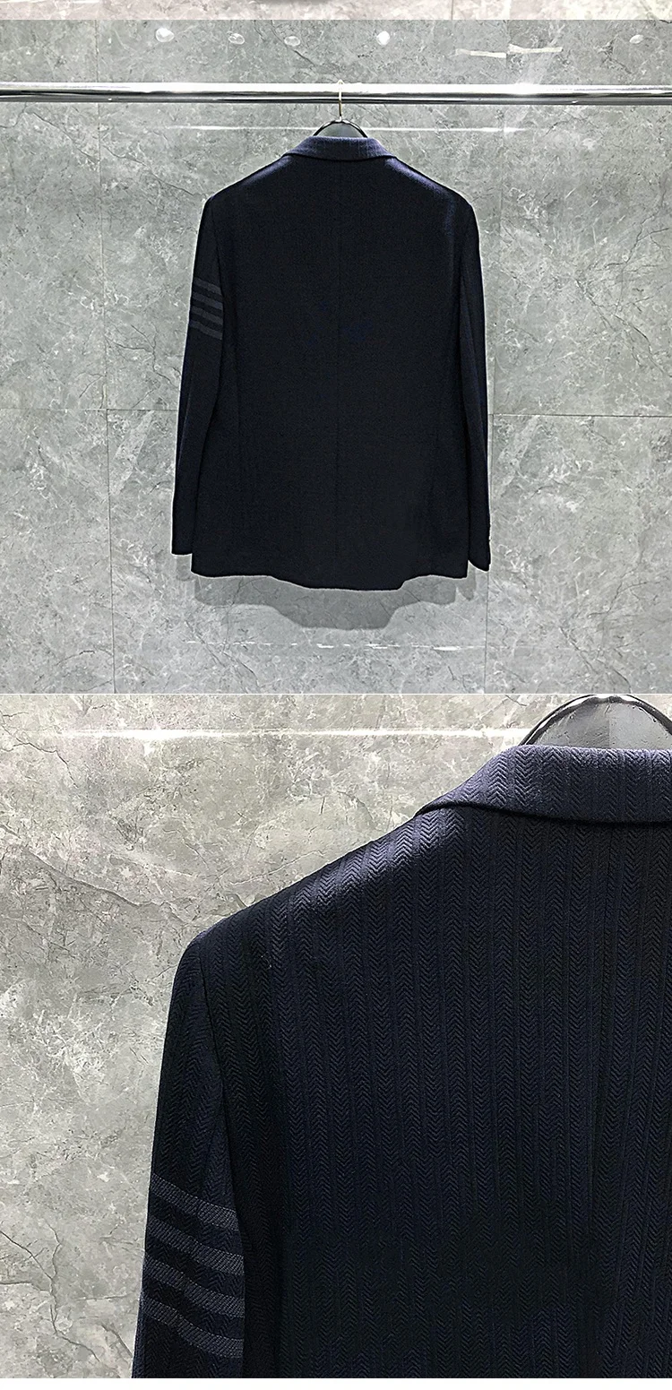 TB THOM Men’s Jackets 2022 Spring Fashion Brand Blazer Classic Tonal Black 4-Bar Stripe Coats Business Formal Suit Jacket
