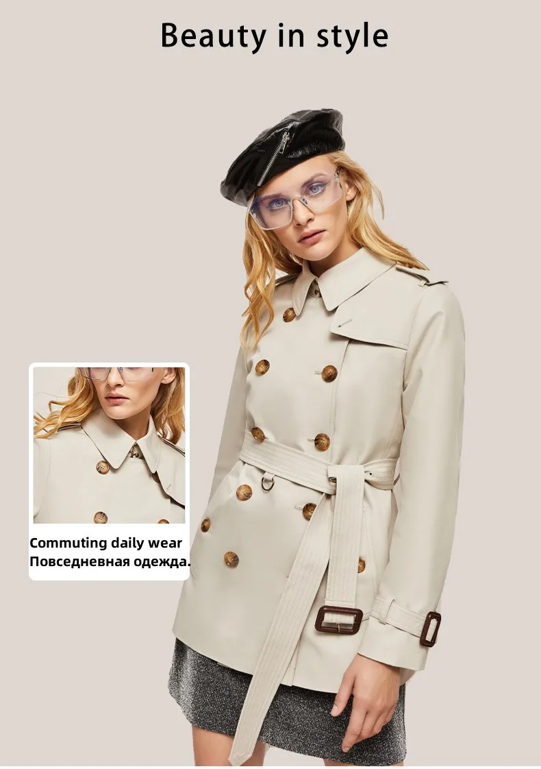 Trench women’s coat 2023 autumn new British style high-end temperament khaki double breasted trench coat women’s classic coat