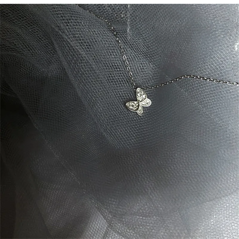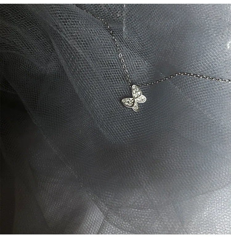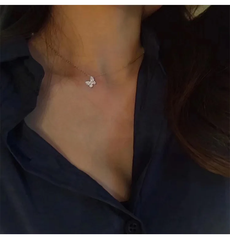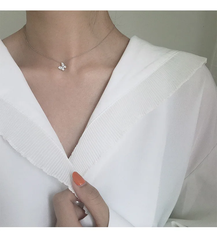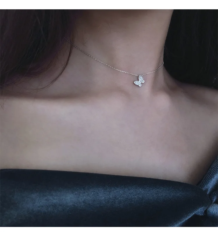 Trend Charming Dazzling Micro CZ Zircon Butterfly Pendant Necklaces For Women Gift Choker Silver Plated Jewelry