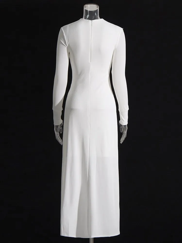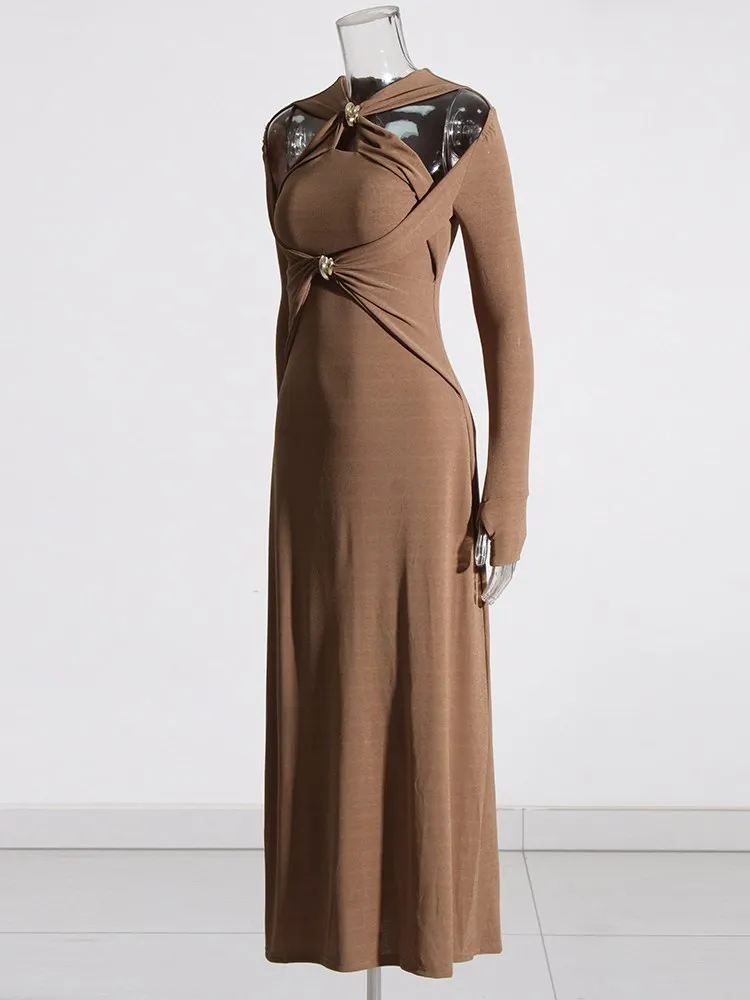 TWOTWINSTYLE Crosscriss Knitting Spliced Sequined Dresses For Women V Neck Long Sleeve High Waist Slimming Long Dress Female New