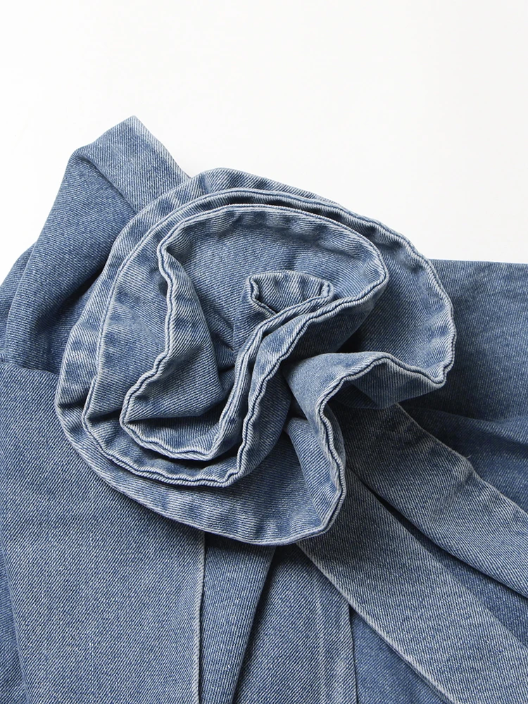 TWOTWINSTYLE Denim Minimalist Irregular Skirts For Women High Waist Patchwork Floral Bodycon Skirt Female Fashion Style 2023 New
