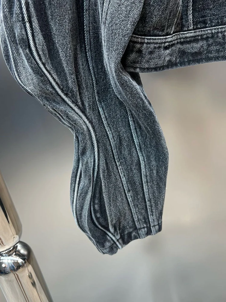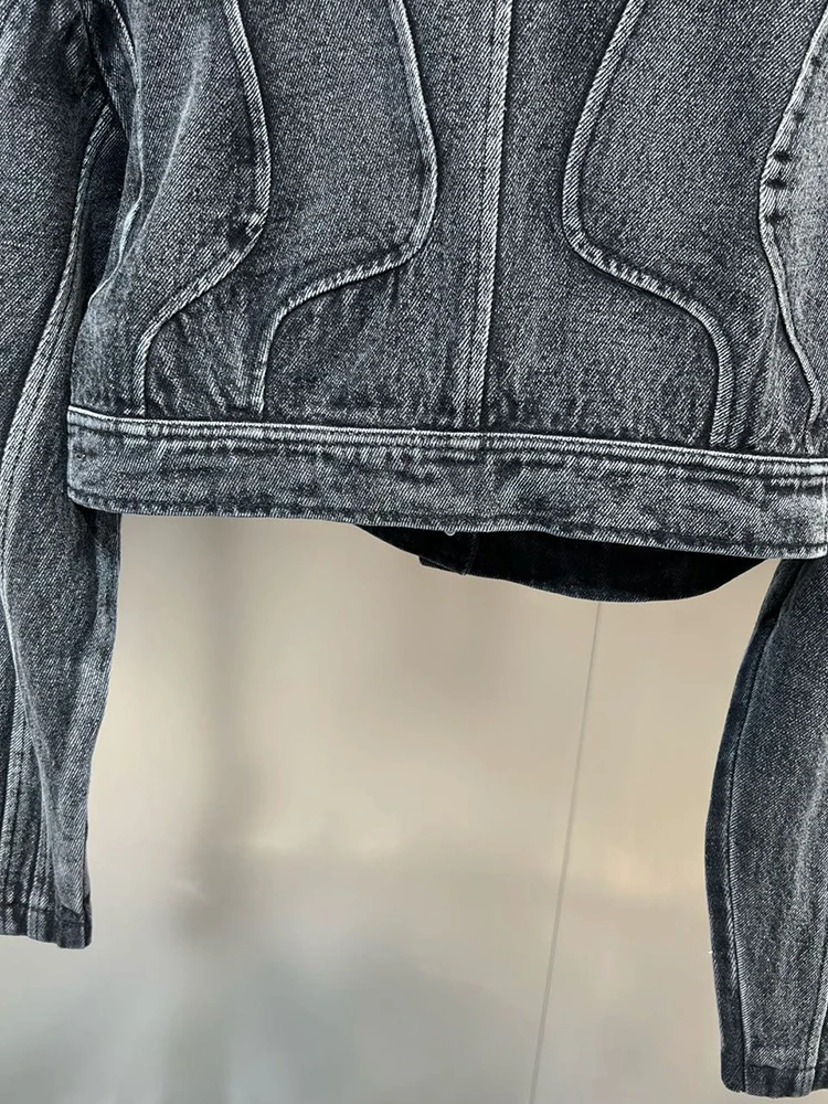 TWOTWINSTYLE Denim Minimalist Jacket For Women Lapel Long Sleeve Patchwork Single Breasted Casual Loose Jacket Female Fashion
