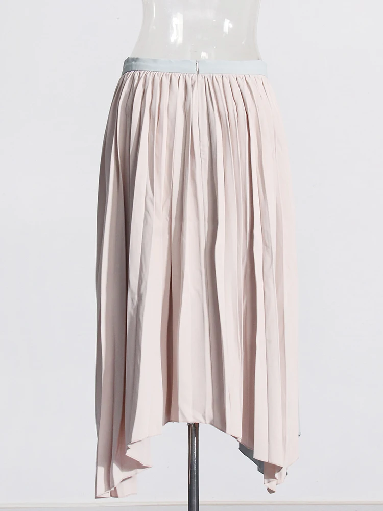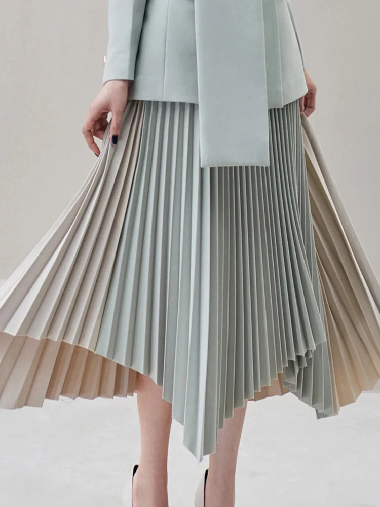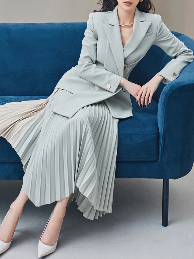 TWOTWINSTYLE Elegant Two Piece Set Womens Notched Collar Long Sleeve Tops High Waist Pleated Irregular Midi Skirts Female Sets