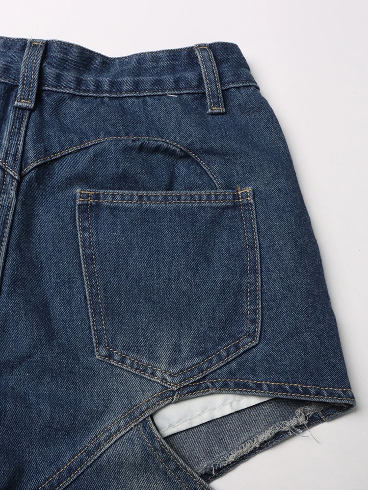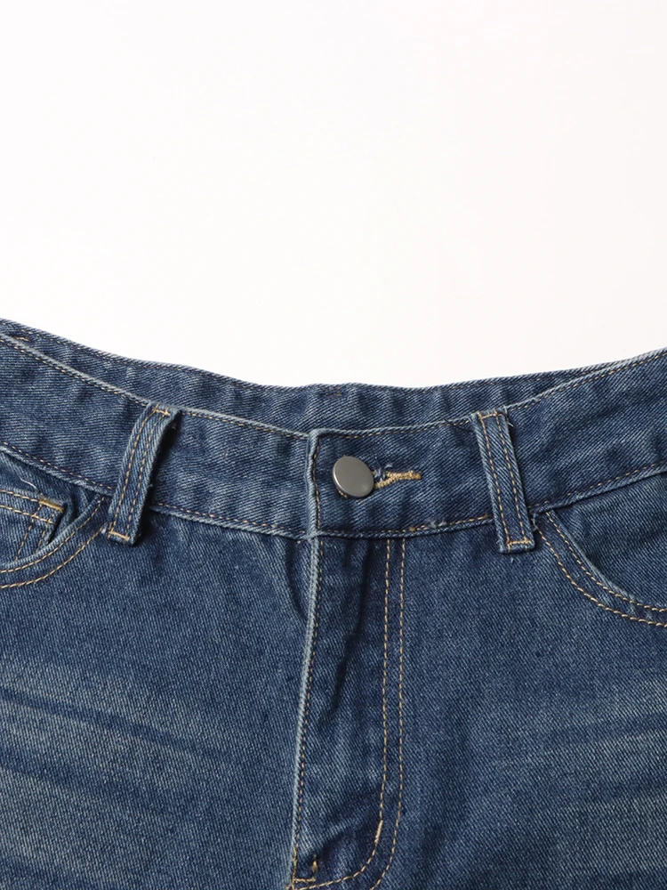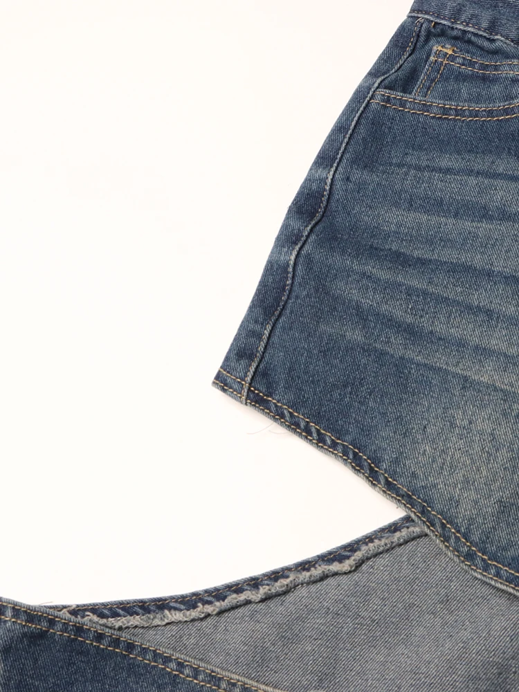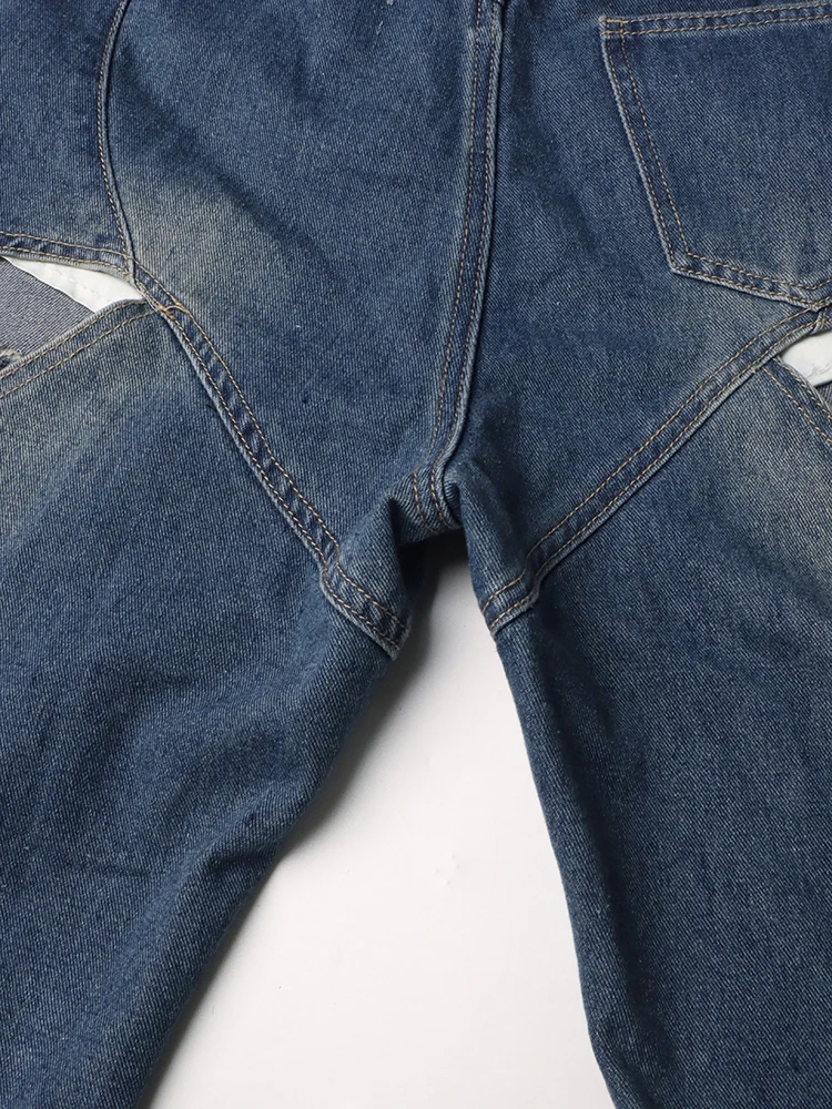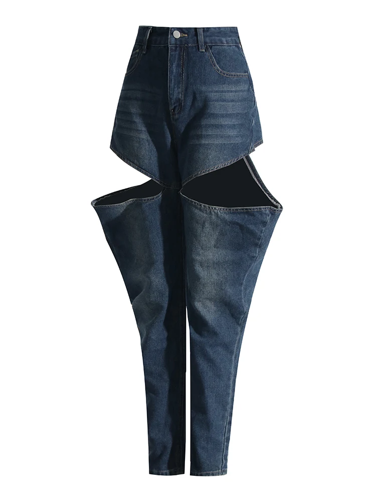 TWOTWINSTYLE Loose Hollow Out Denim Pants For Women High Waist Spliced Button Casual Wide Leg Jeans Female Fashion Clothing 2023