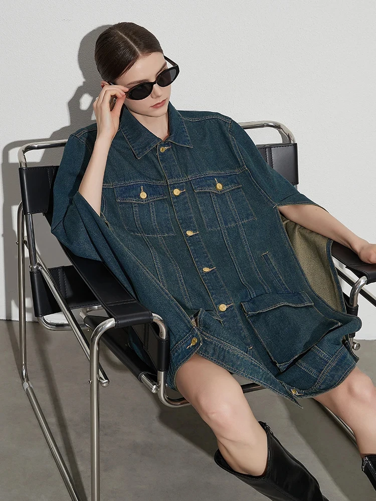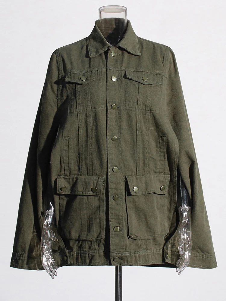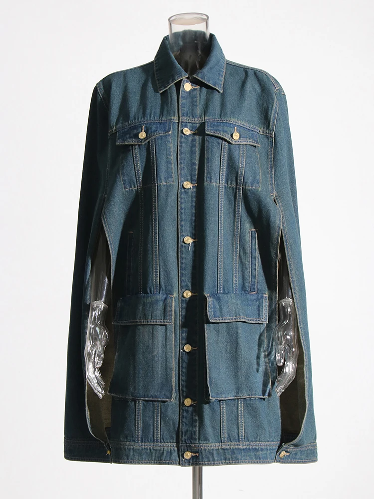 TWOTWINSTYLE Patchwork Pockets Casual Loose Coats For Women Lapel Cloak Sleeve Spliced Button Streetwear Coat Female Fashion New