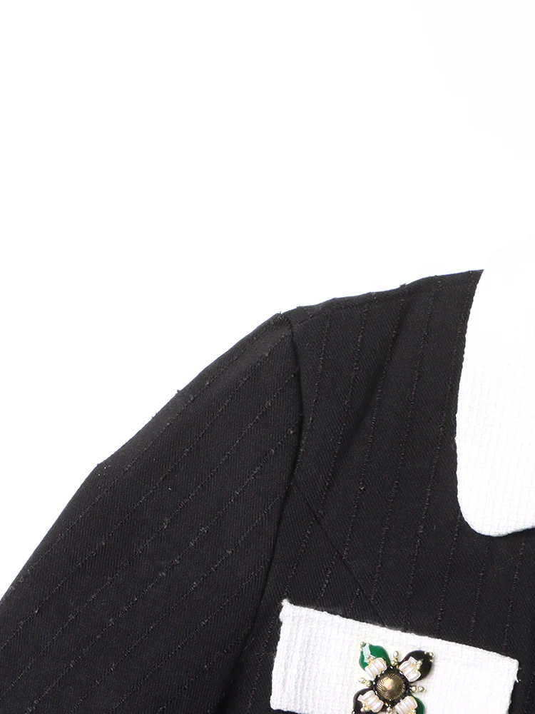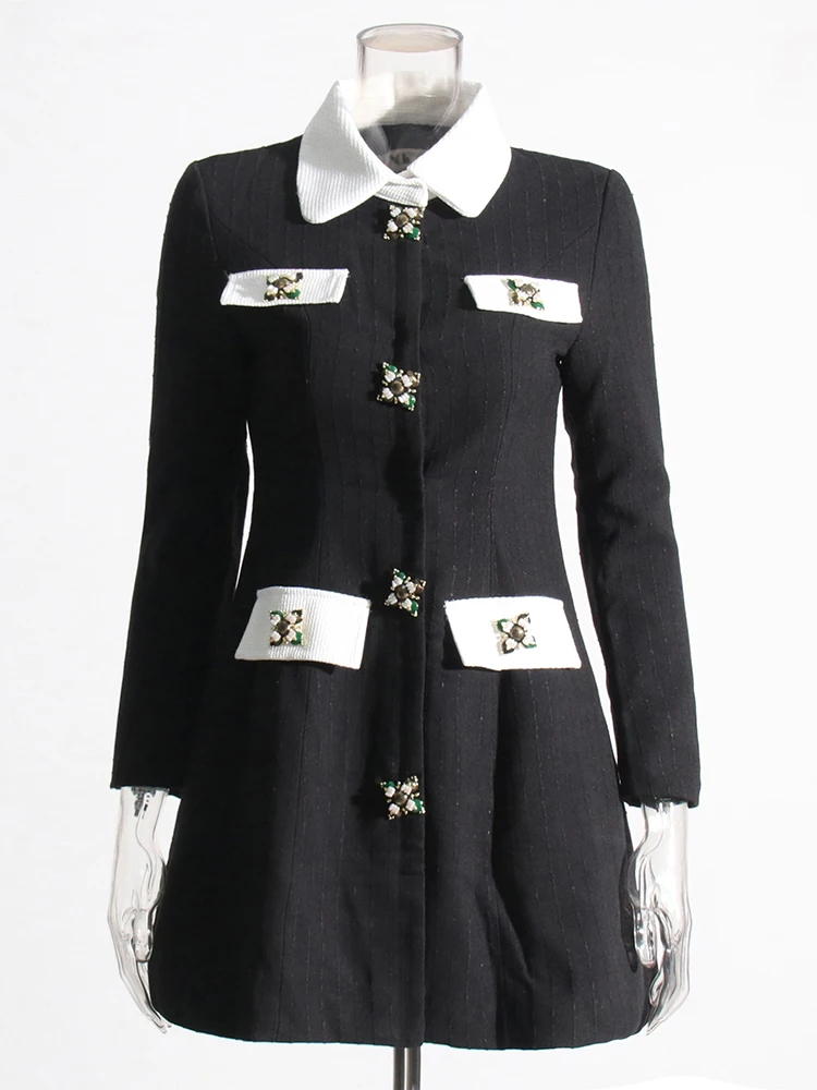 TWOTWINSTYLE Slim Dresses For Women Lapel Long Sleeve High Waist Mini Patchwork Button Hit Color Diamonds Dress Female Summer