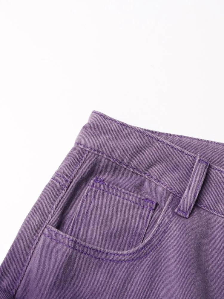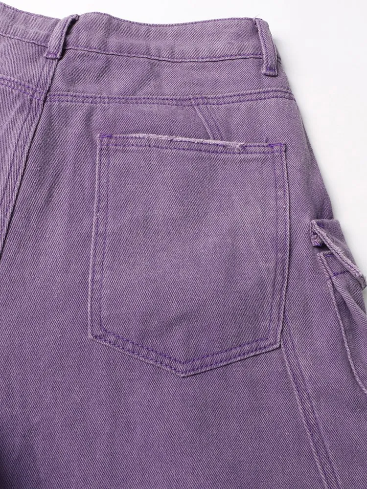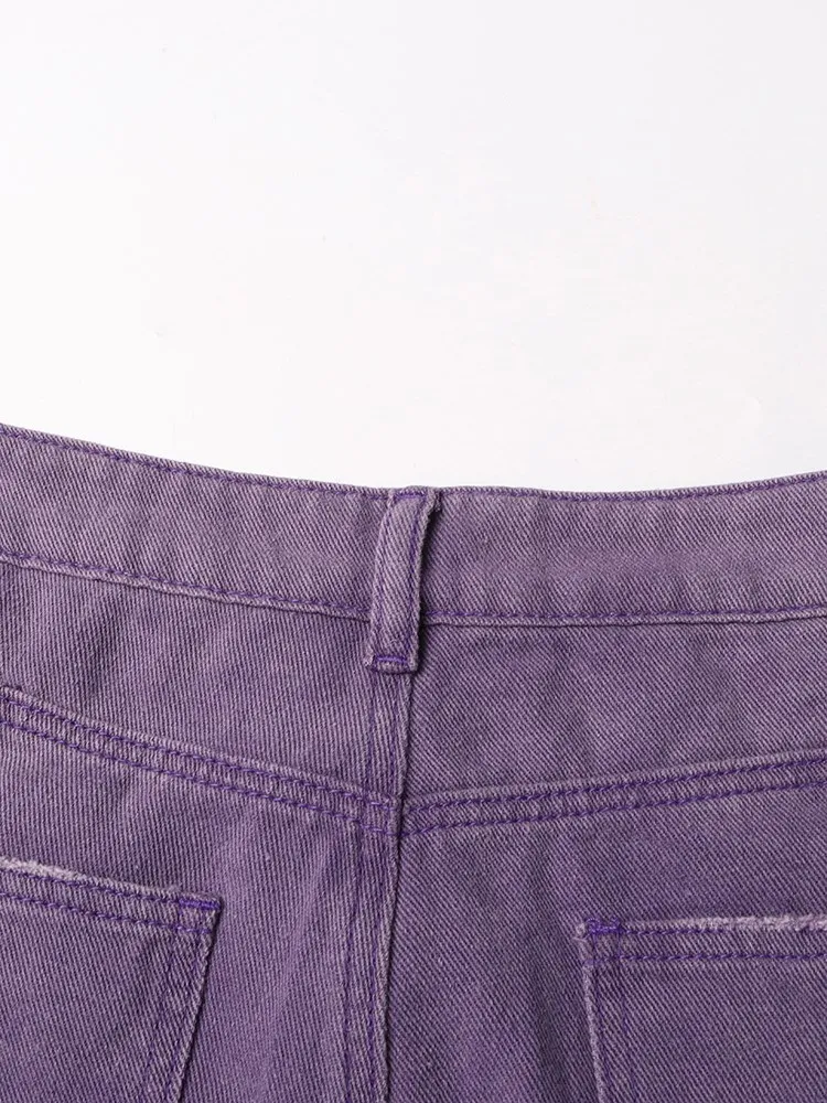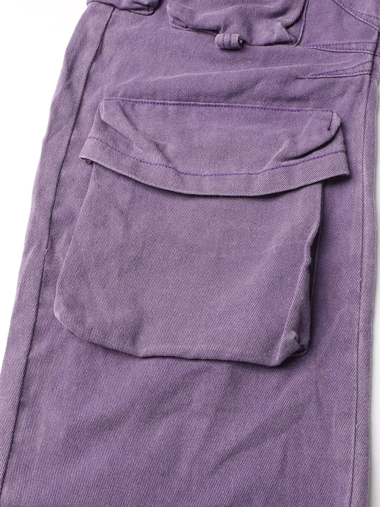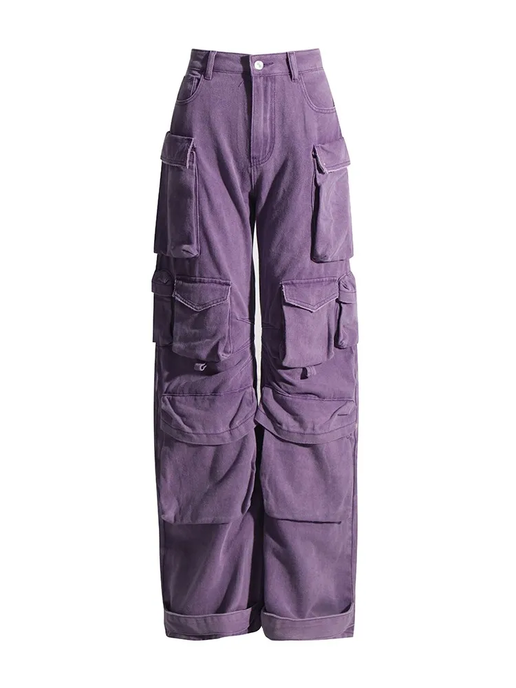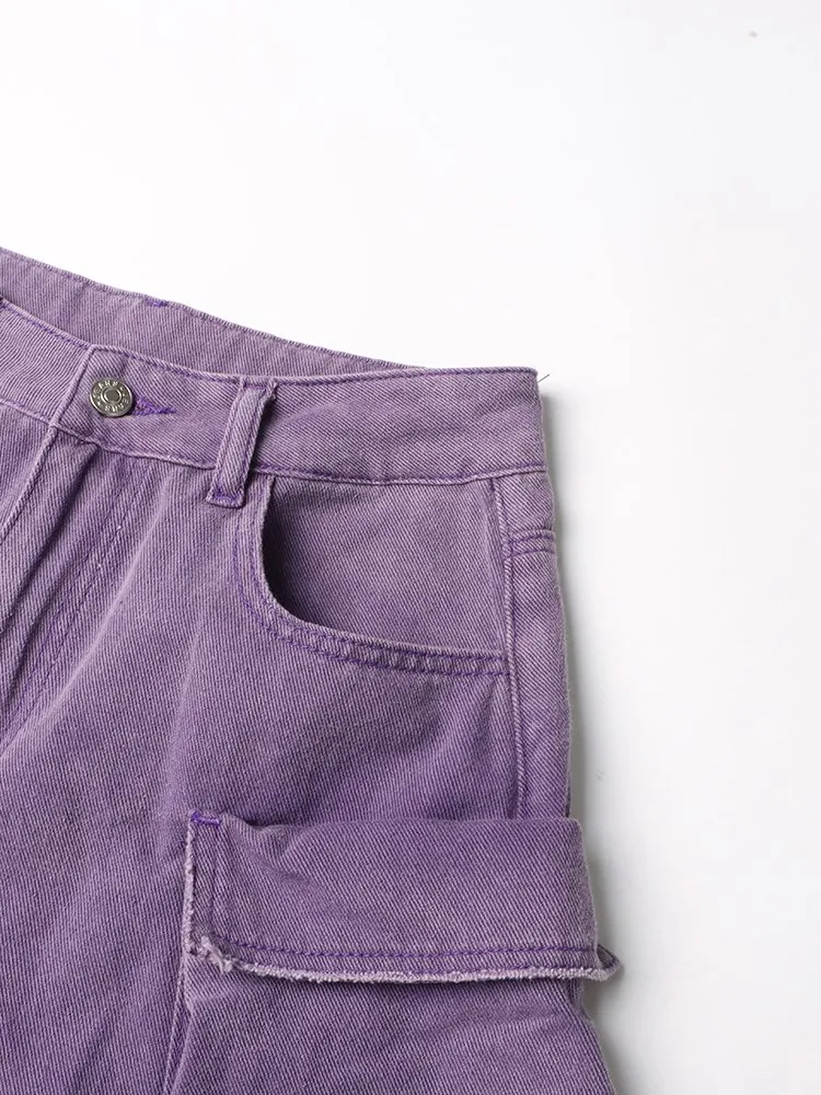 TWOTWINSTYLE Solid Spliced Pockets Denim Trousers For Women High Waist Patchwork Button Casual Cargo Jeans Female Fashion Style