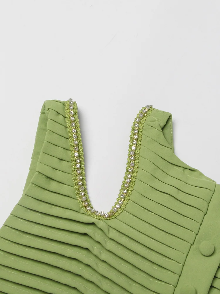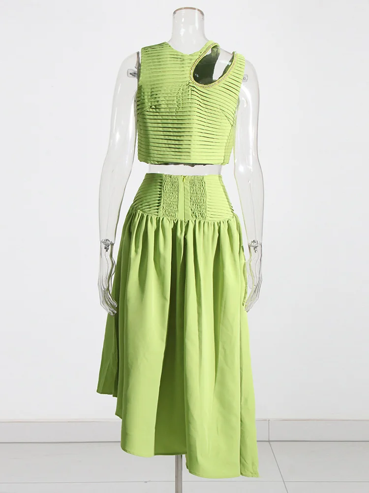 TWOTWINSTYLE Spliced Folds Two Piece Sets For Women Round Neck Sleeveless Hollow Out Vest High Waist Skirt Solid Set Female 2023