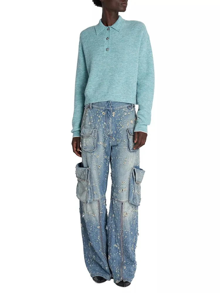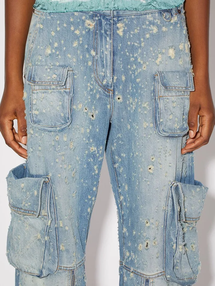 TWOTWINSTYLE Spliced Pockets Streetwear Denim Pant For Women High Waist Patchwork Zipper Casual Cargo Jeans Female Fashion Style