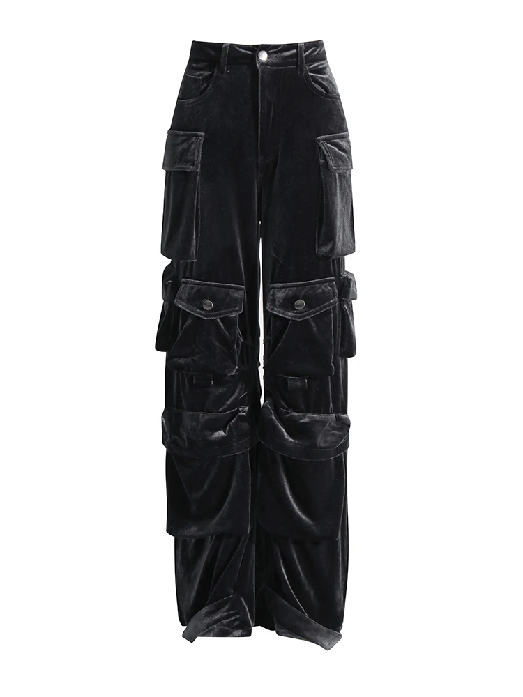 TWOTWINSTYLE Vintage Spliced Button Trousers For Women High Waist Patchwork Pockets Casual Loose Cargo Pant Female Fashion Style
