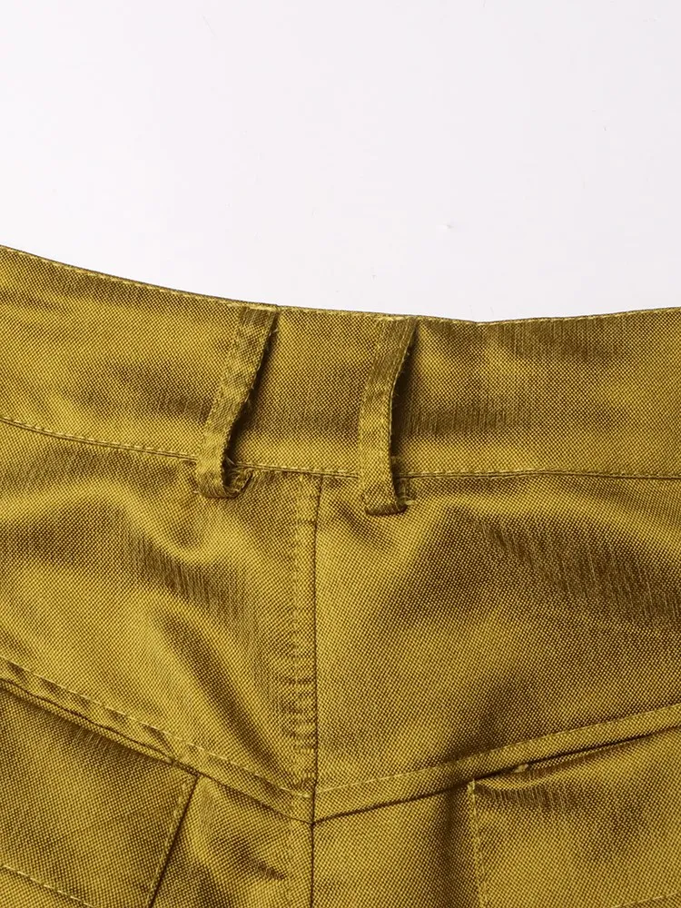 TWOTWINSTYLE Yellow Trousers For Women High Waist Patchwork More Than A Pocket Minimalist Winter Wide Leg Pants Female Fashion