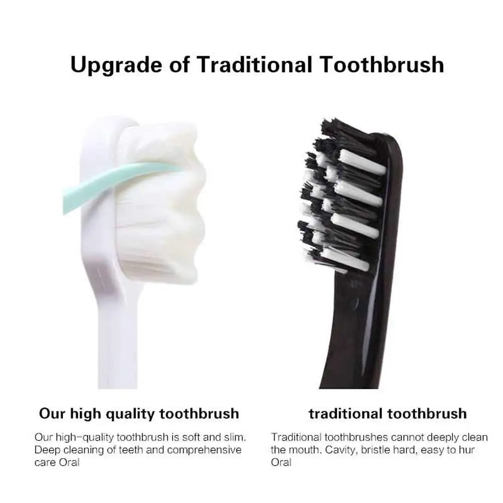 Upgrade Toothbrush: Our toothbrush has more than 15000 bristles. It is delicate and soft. It can be deeply cleaned in the mouth and designed for sensitive teeth. Traditional toothbrushes can’t clean the mouth deeply. The bristles are too hard and can easily damage the mouth. Choosing our toothbrush is absolutely correct.