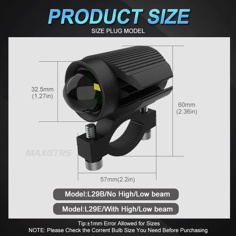 L29E=15W ±2W 6000K White Wtih High/Low beam,Black Shell,Two wire installation.