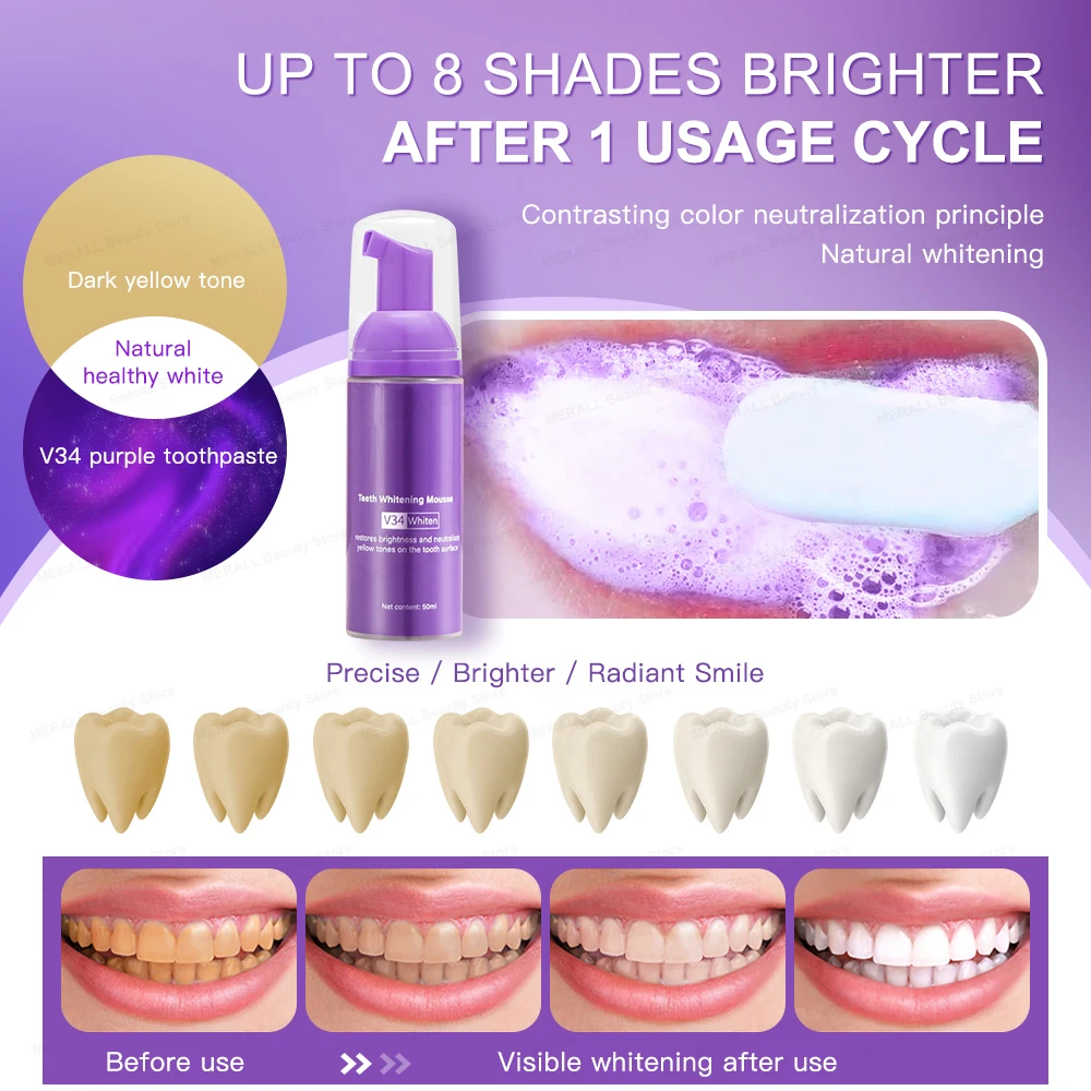V34 Toothpaste Teeth Whitening Protect Tooth Enamel Intensive Stain Removal V34 Colour Corrector Toothpaste Improve Yellow Teeth