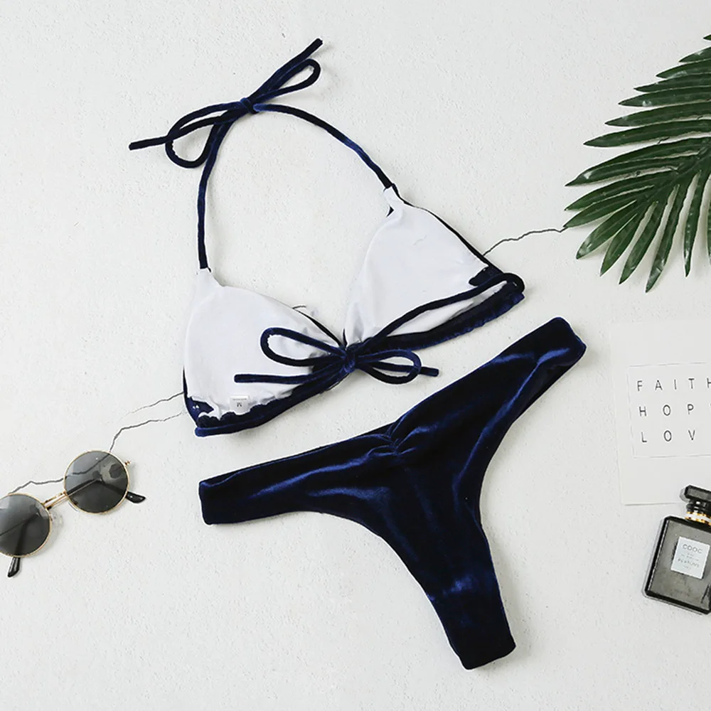 Velvet Bikinis Women 2019 Brazilian Swimsuit Solid Swimming Suit For Women Thong Swimwear Female Bathing Suit May Beach Biquine