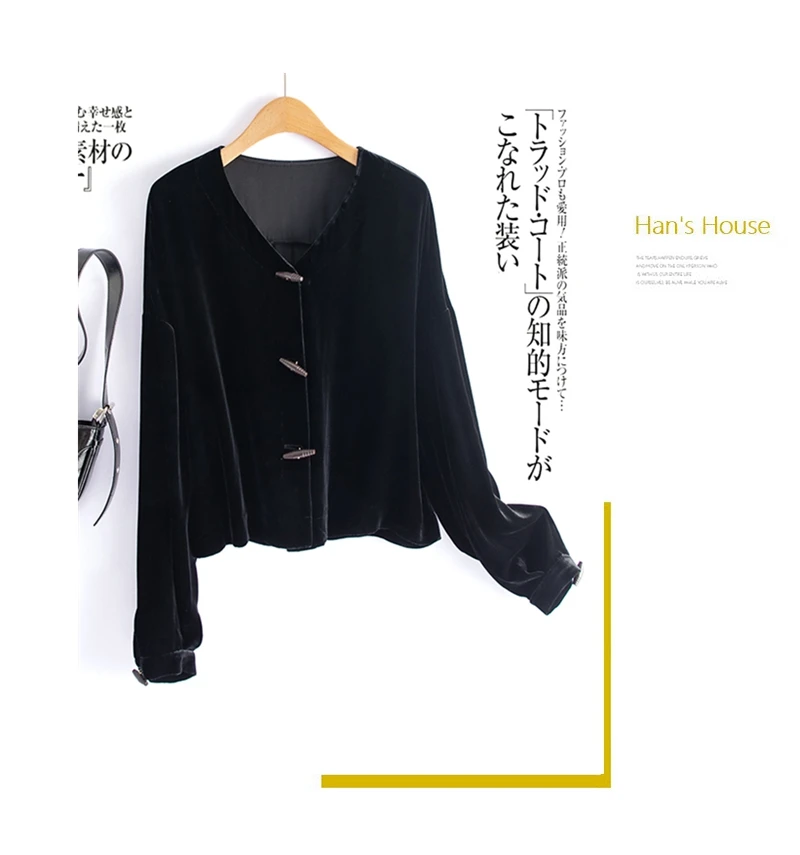 Velvet Blouse Women Lazy Elegant Style Blacker 100% Silk O Neck Long Sleeves Pocket Casual Shirt New Fashion