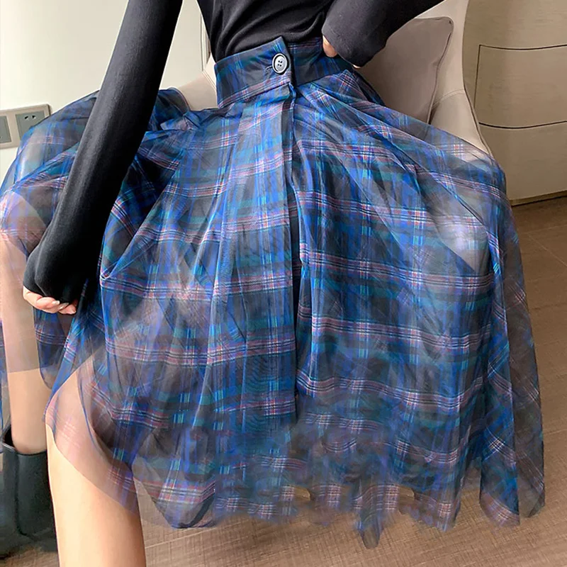 VGH Casual Plaid Patchwork Mesh Women’s Skirts High Waist Hit Color Elegant A Line Skirt For Female 2020 Spring Fashion Clothing