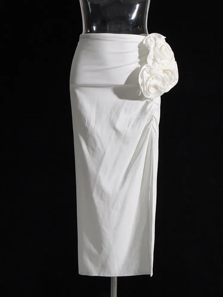VGH Patchwork Appliques Solid Slimming Skirts For Women High Waist Split Thigh Folds Bodycon Sexy Skirt Female Fashion Clothing