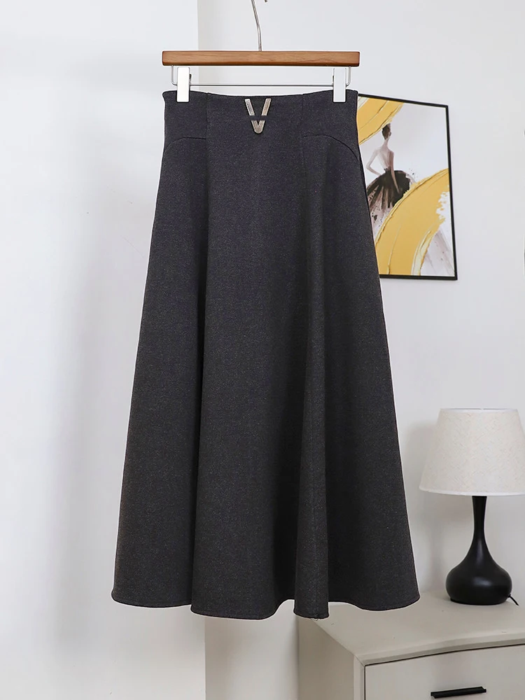 VGH Solid Patchwork Metal Buckle Minimalist Skirts For Women High Waist Spliced Zipper Temperament A Line Skirt Female Fashion